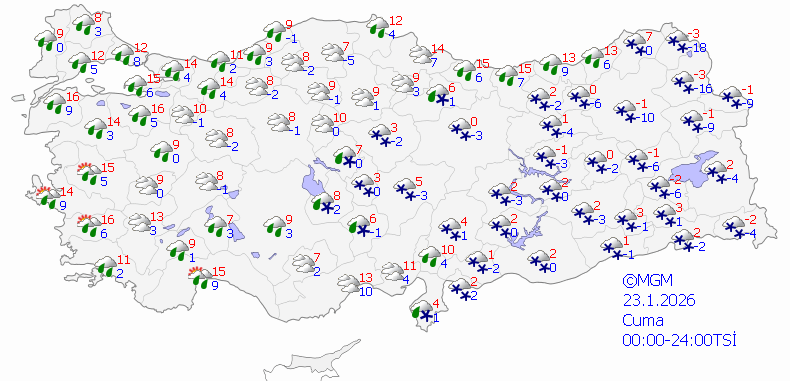 Güne şehir merkezinde 1°C, kırsal bölgelerde -3°C'lere gerileyen dondurucu soğuk hava ile birlikte kar yağışlı bir gökyüzüyle başlandı. Öğle saatlerine kadar il genelinde yerel kuvvetli kar sağanakları beklenirken, akşam saatlerinde yağışların karla karışık yağmur şeklinde olacağı tahmin ediliyor.