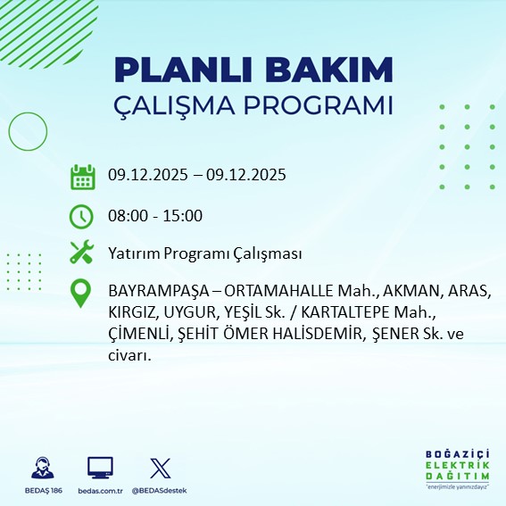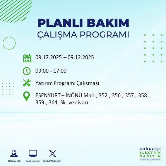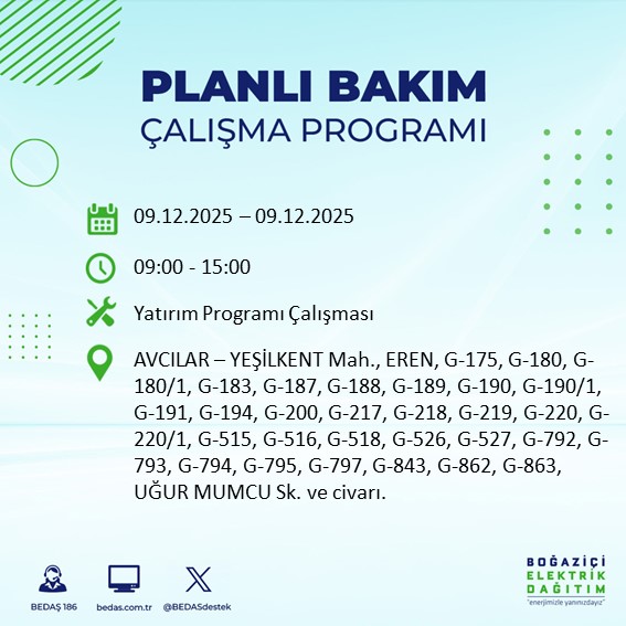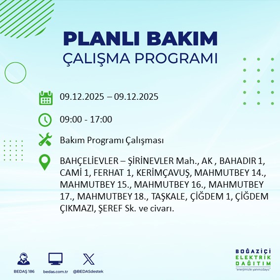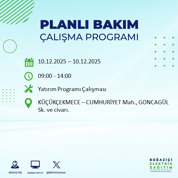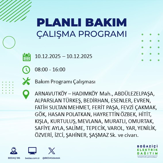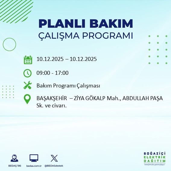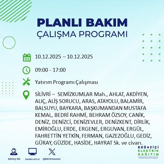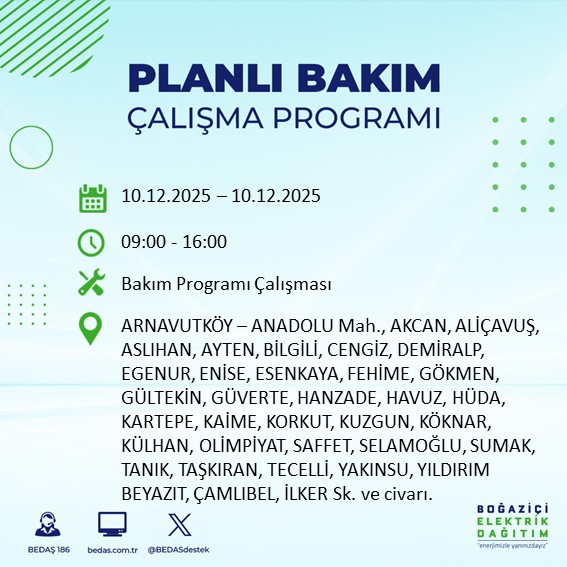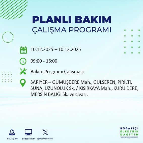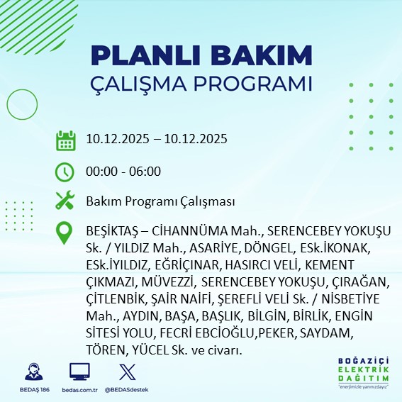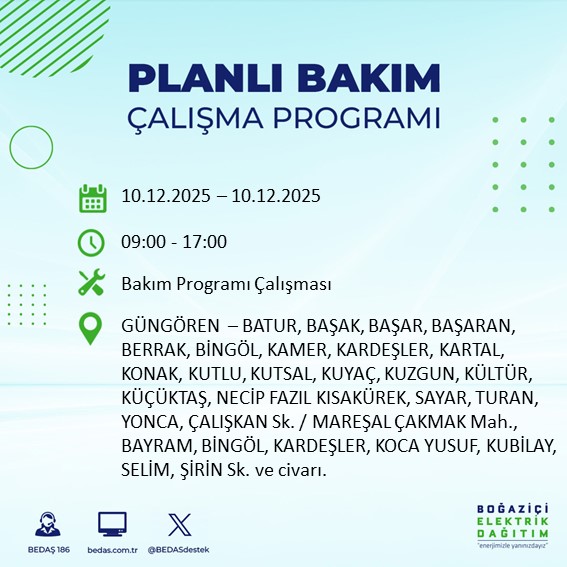 10.12.2025 tarihli elektrik kesintisi tam liste...