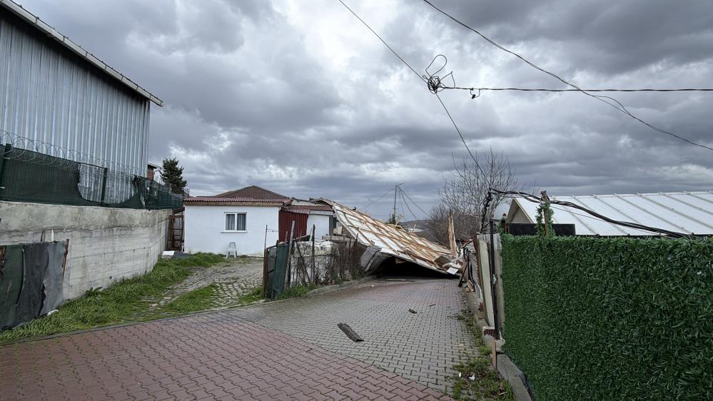 Şiddetli rüzgarın etkisiyle bir evin çatısı yerinden koparak, yaklaşık 30 metre sürüklenerek yan sokaktaki bir evin üzerine ve sokağa düştü.