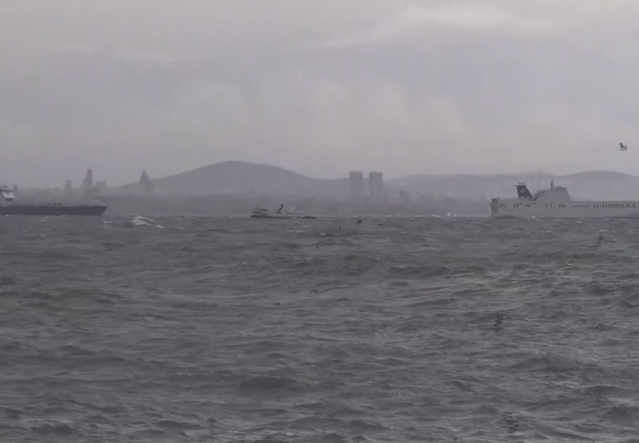 Fatih Yedikule sahili açıklarında ise şiddetli lodos nedeniyle gemilerin demir atarak bekledikleri görüldü.