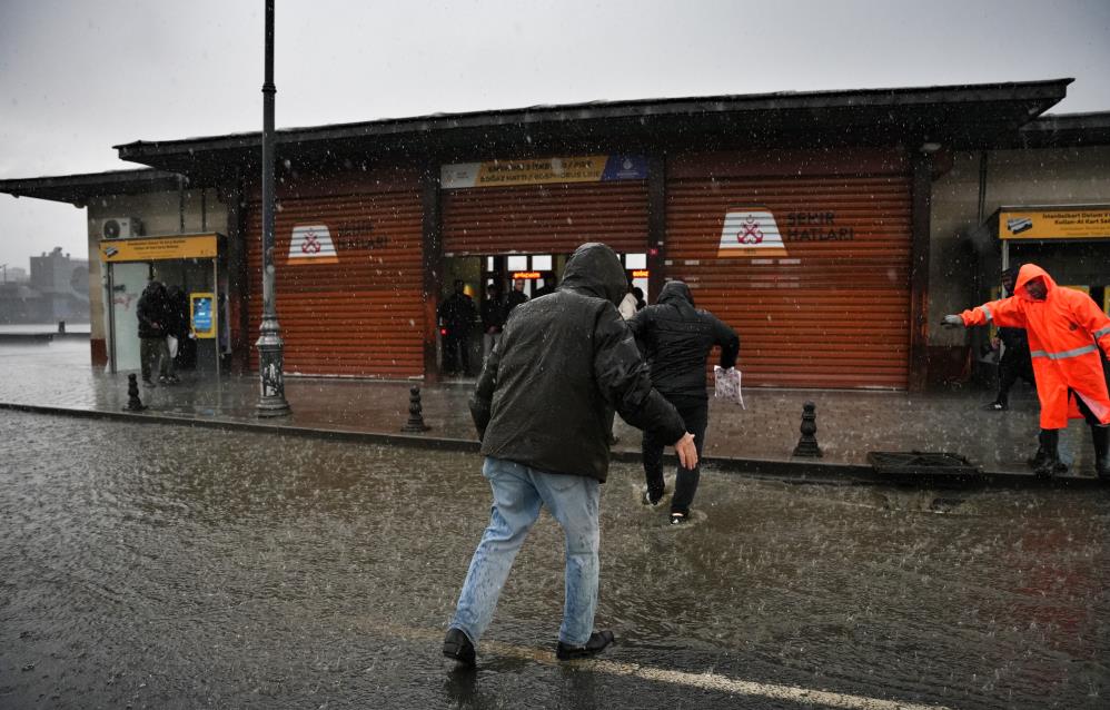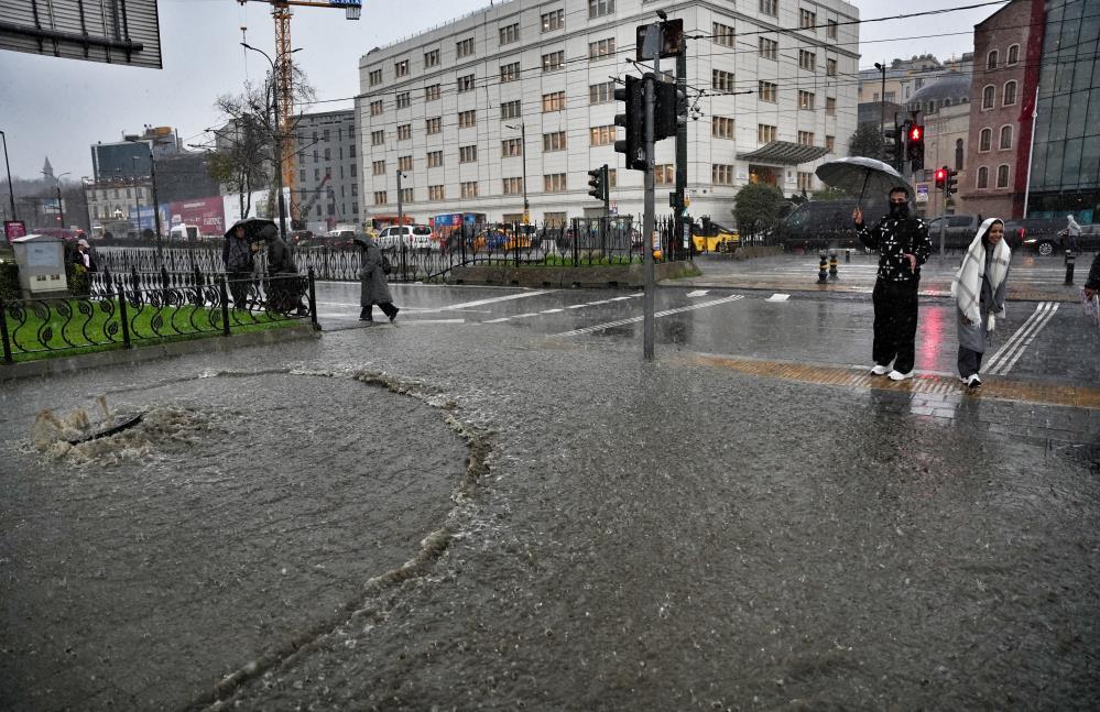 Şiddetli yağmur nedeniyle yollar göle dönerken, Eminönü'nü ise su bastı. Sürücülerin ise güçlükle ilerlediği görüldü. Göle dönen yolda bir rögar kapağının ise suyun şiddetiyle yerinden çıktığı görüldü. Yolun karşısına geçmeye çalışan vatandaşlar ise ıslanmamak için büyük çaba sarf etti.