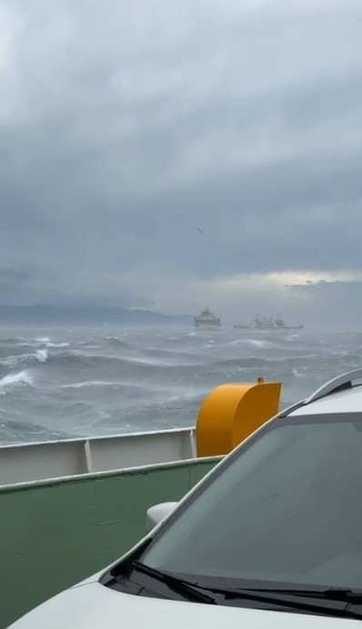 Yaklaşık 2 saattir deniz ortasında bekleyen yolculara gemi kaptanı tarafından fırtınanın dinmesinin ardından geminin hareket edeceği bilgisinin verildiği öğrenildi.