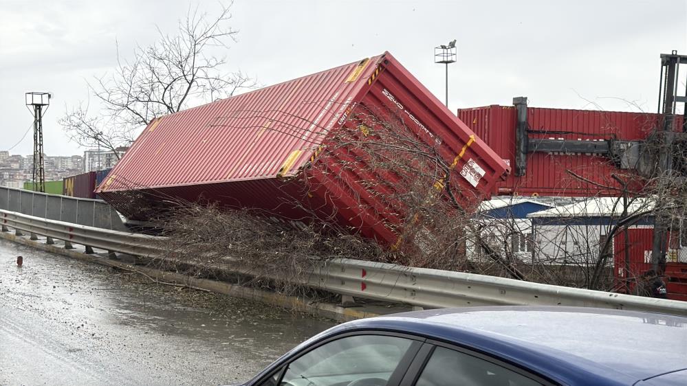 Küçükçekmece Halkalı eski gümrük sahasında şiddetli rüzgar konteynırları devirdi. Konteynerlar vinç yardımıyla kaldırıldı.