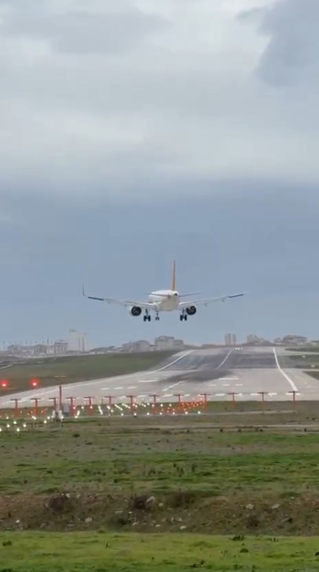 Şiddetli lodos nedeniyle Sabiha Gökçen Havalimanı’na iniş yapmak için alçalan bazı uçaklar pistti pas geçmek zorunda kalırken, bazı uçaklarda havada tur atmak zorunda kaldı.