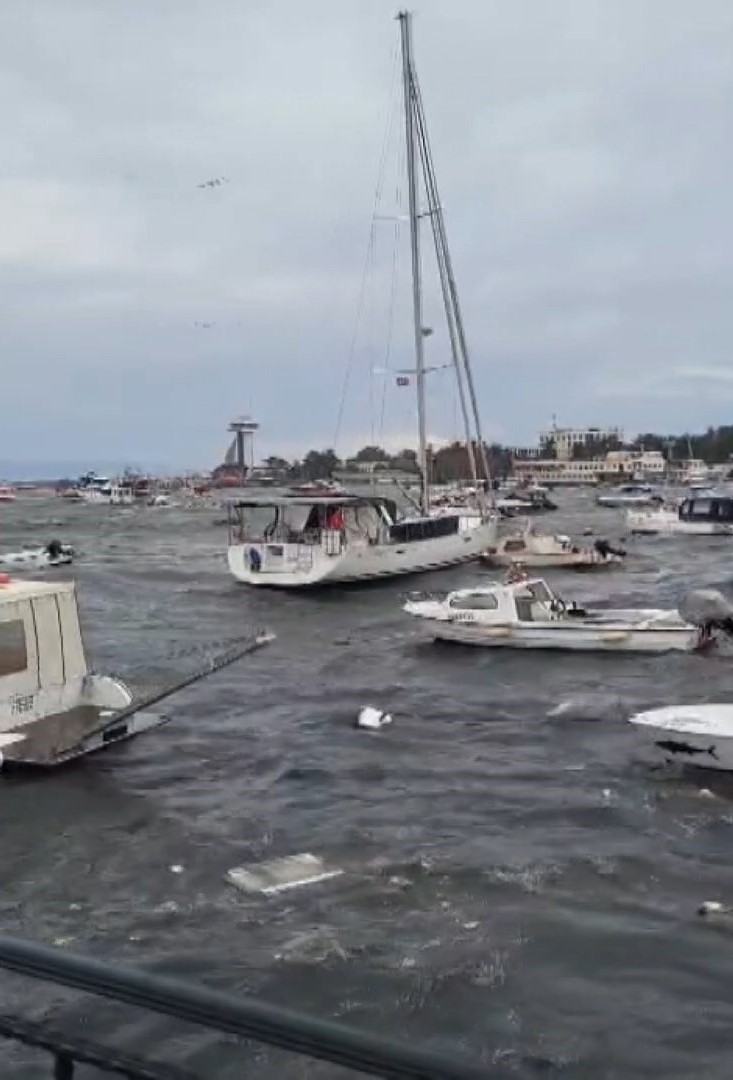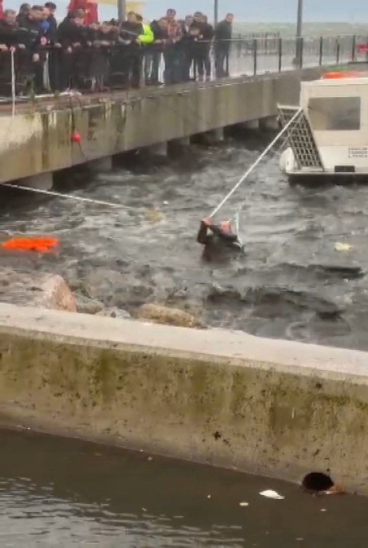 Kıyıya çarpan bazı tekneler parçalanarak alabora oldu. Bu sırada denize düşen bir kişi ise halatlara tutunarak çevredekilerin de yardımıyla kurtarıldı. Polis ekipleri sahile emniyet şeridi çekerek önlem alırken yaşananlar cep telefonu kamerasıyla kaydedildi.