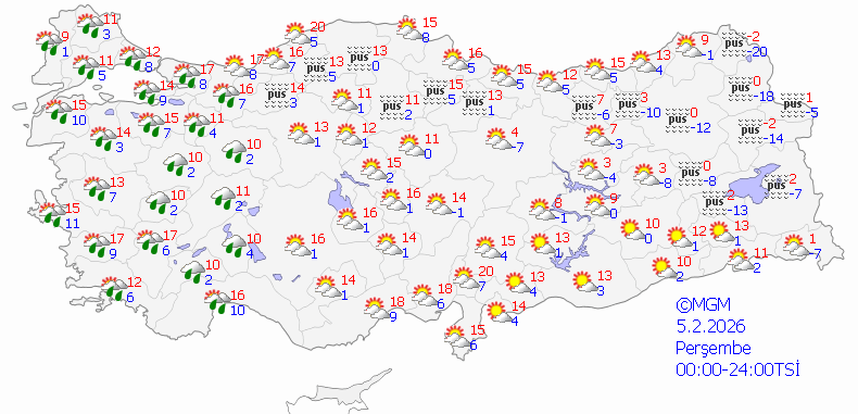 Meteoroloji Genel Müdürlüğü'nün son değerlendirmelerine göre Türkiye genelinde havanın çok bulutlu ve aralıklı yağışlı geçmesi bekleniyor.