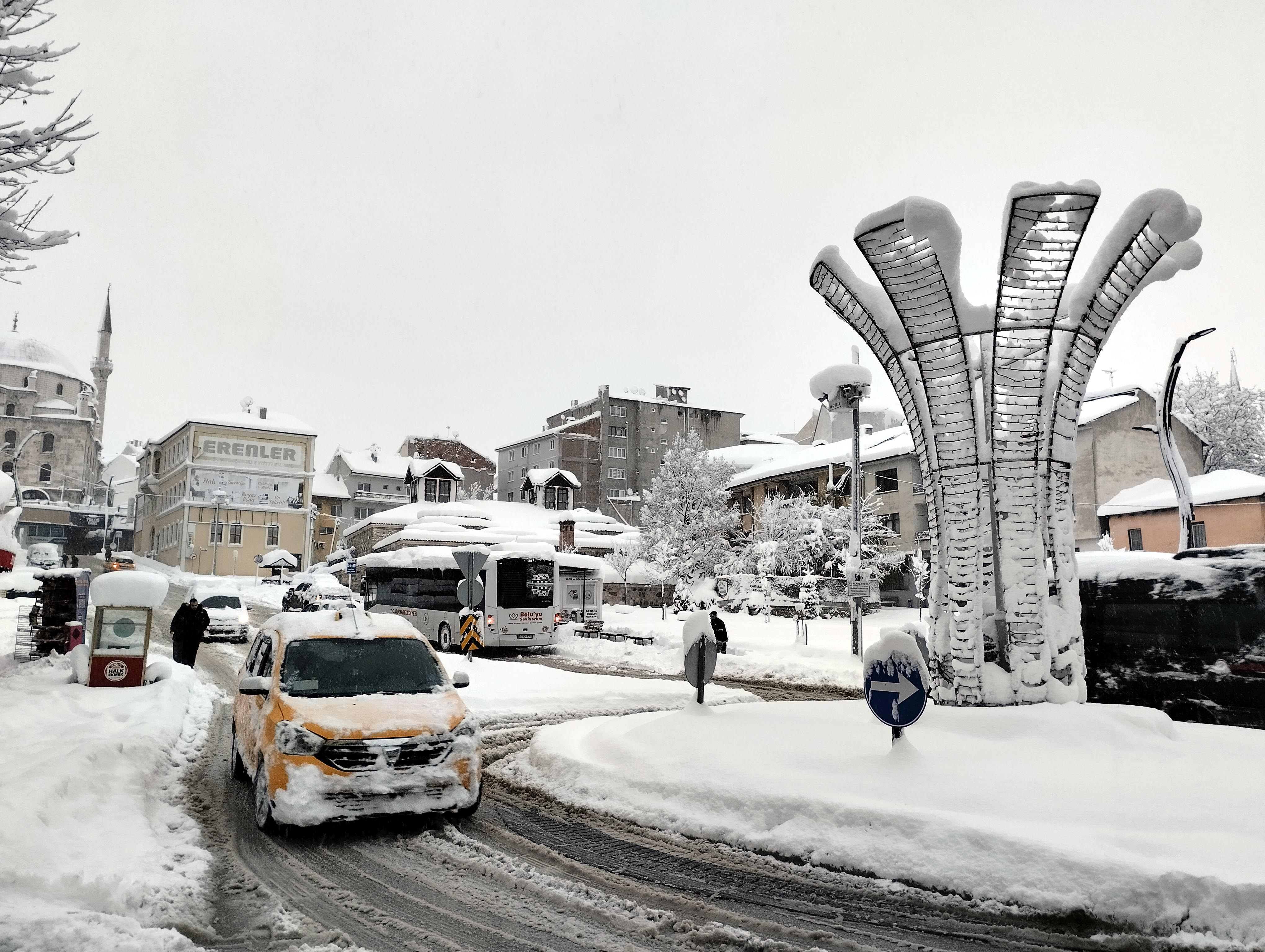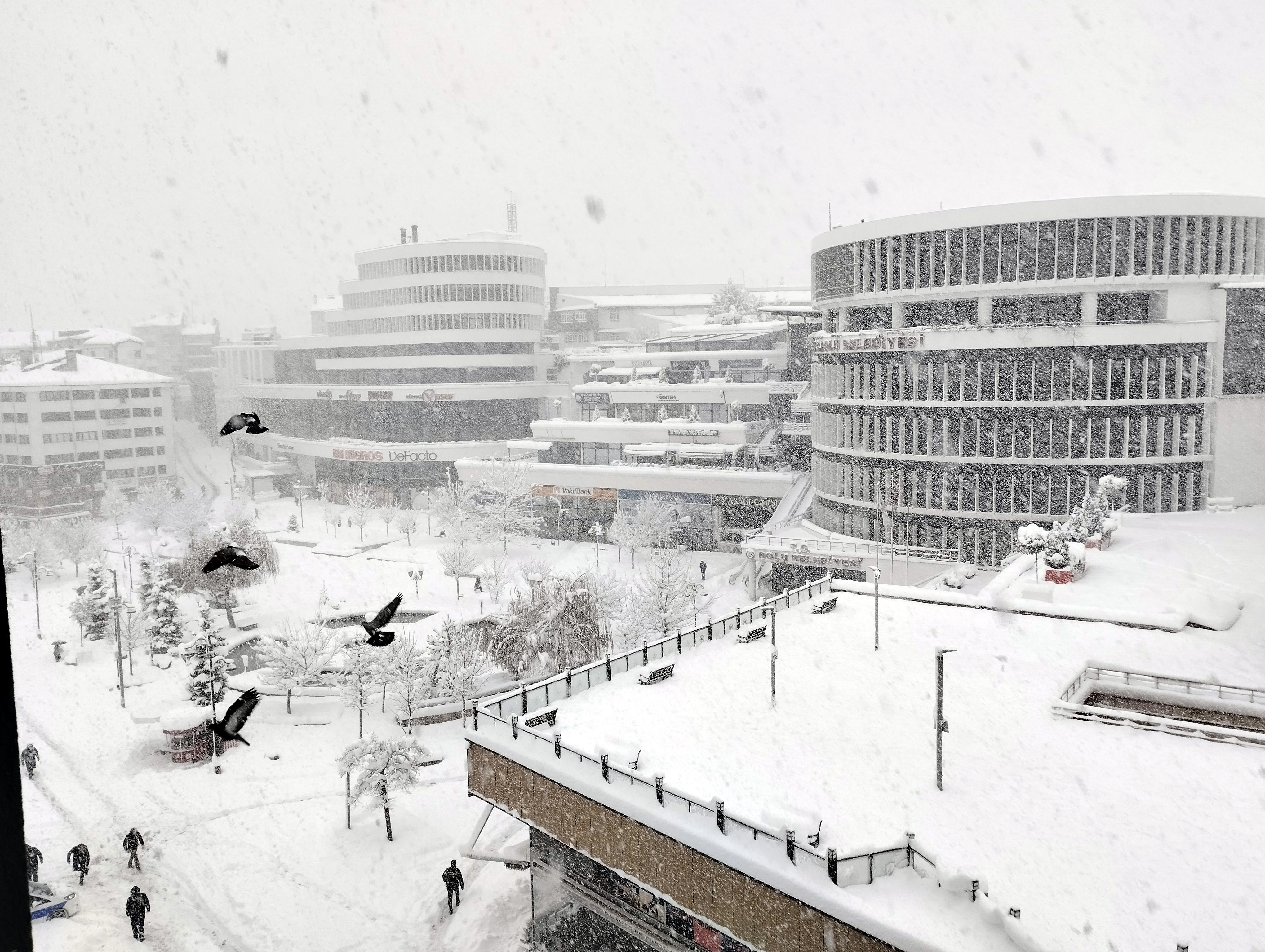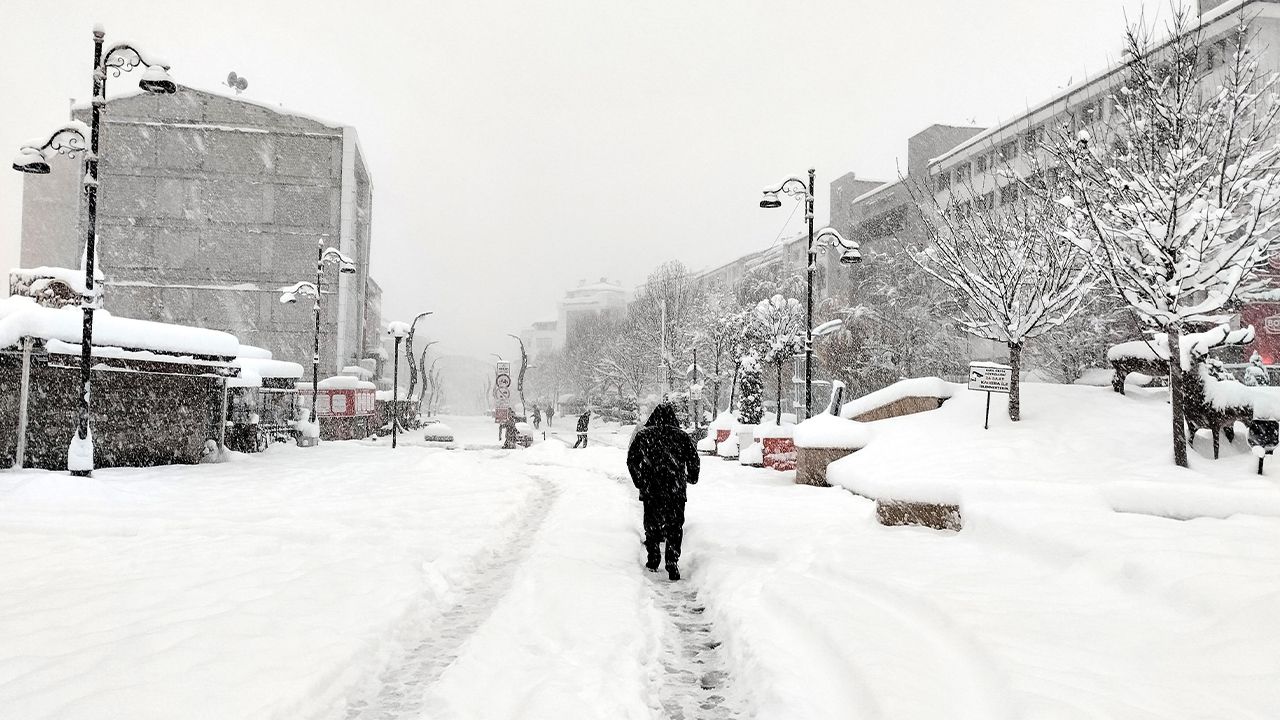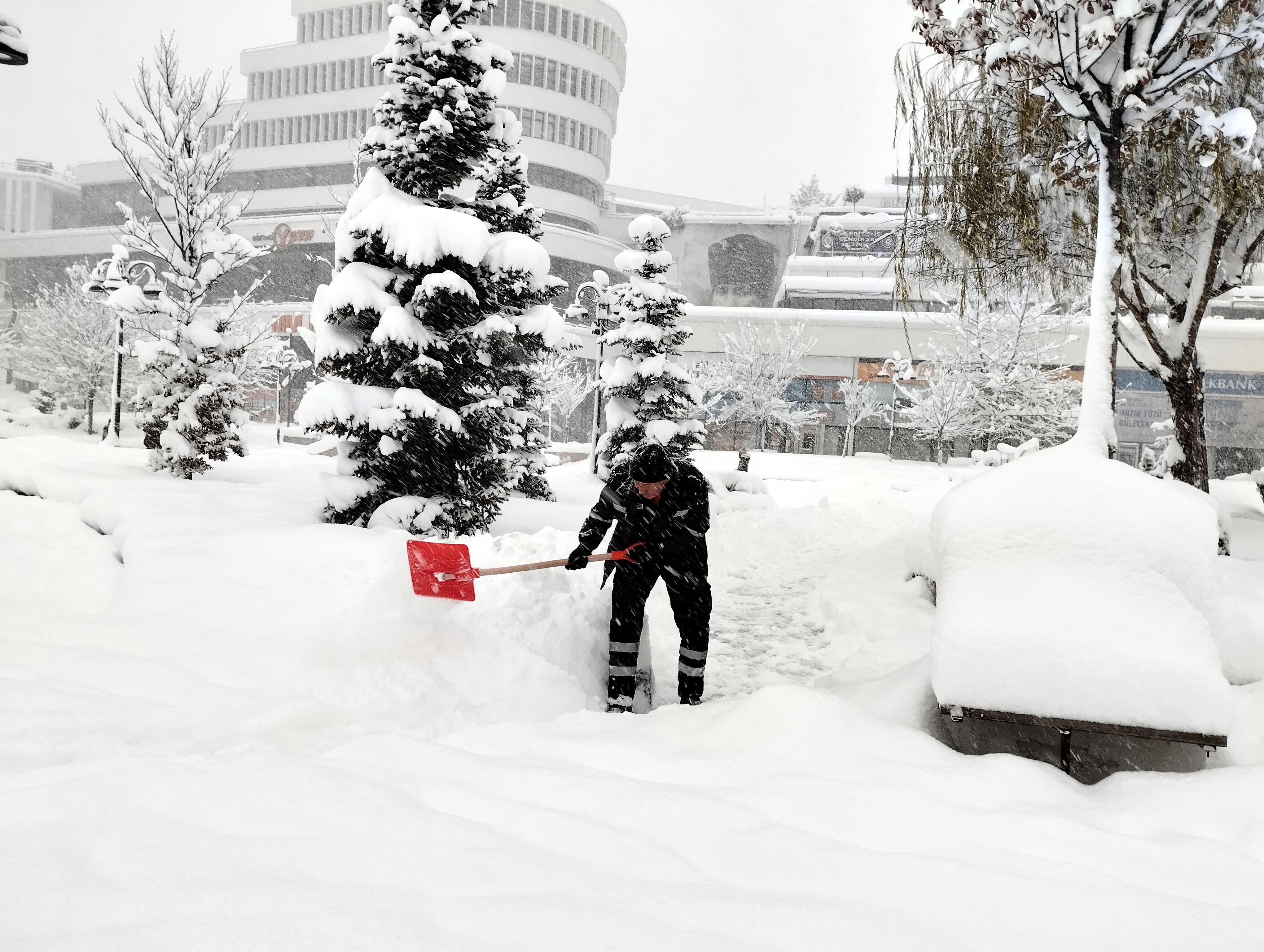 Sabah saatlerinde de yoğun şekilde devam eden kar yağışı nedeniyle kent merkezinde kar kalınlığı yarım metreyi aştı.