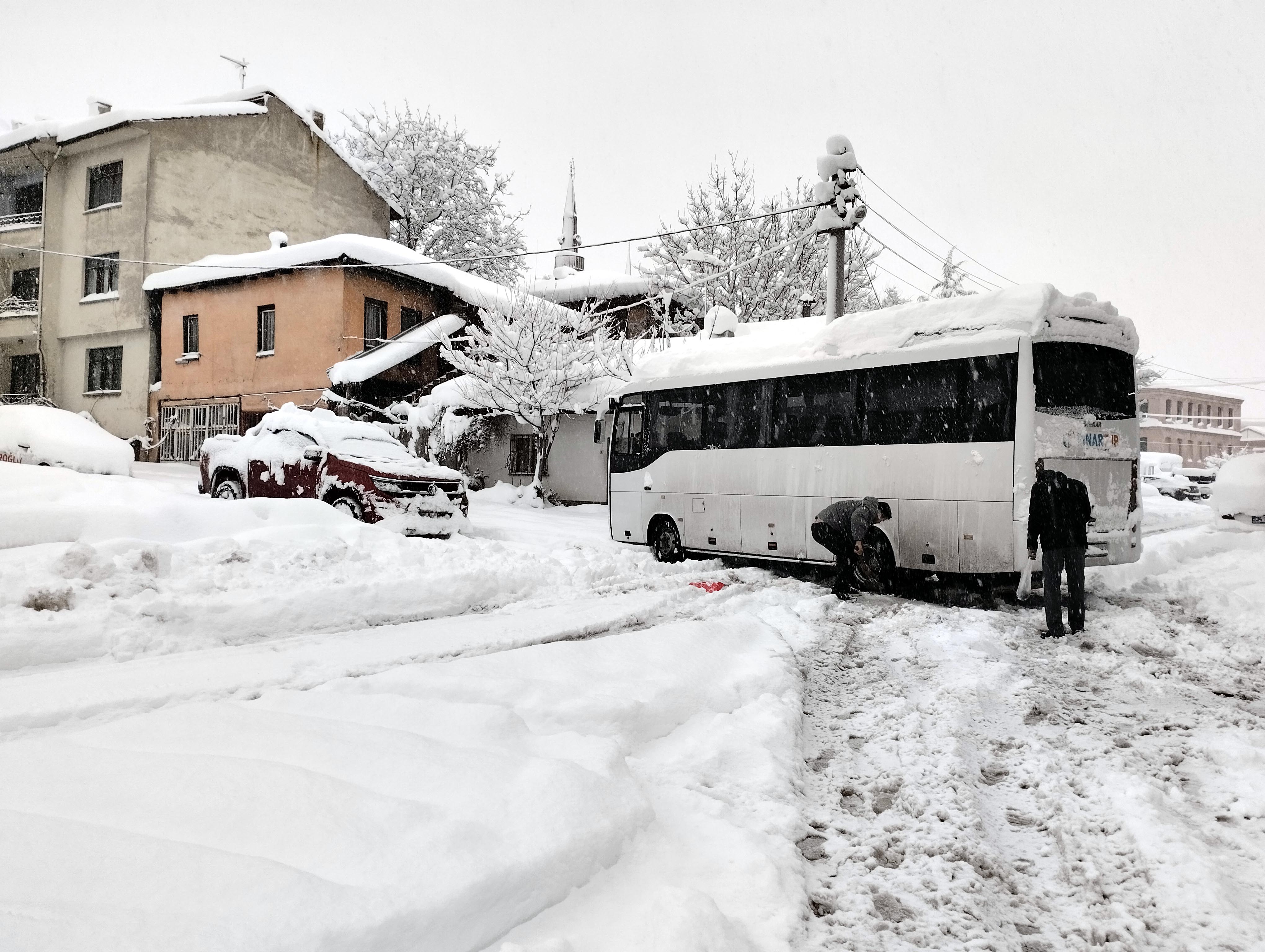 Kent merkezindeki ana arteller üzerinde birçok sürücü karla kaplı yollarda zor anlar yaşadı bazı araçlarda yollarda kaldı.