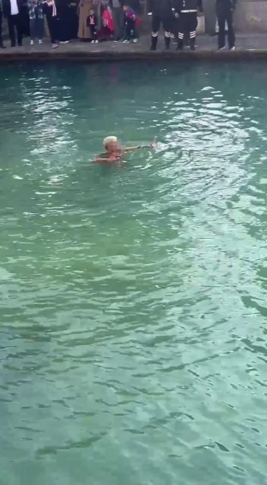 Bir süre suda kalan şahıs, ekiplerin müdahalesiyle çıkartıldı.