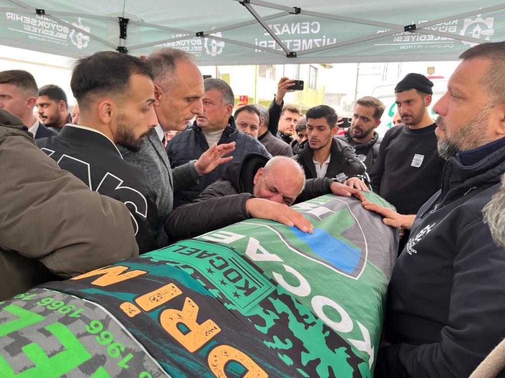 Cenazede, Kaçmaz'ın Kocaelispor bayrağına sarılı tabutunun başında bekleyen baba Fehmi Kaçmaz ve ağabey Savaş Kaçmaz, taziyeleri kabul ederken ayakta durmakta güçlük çekti.