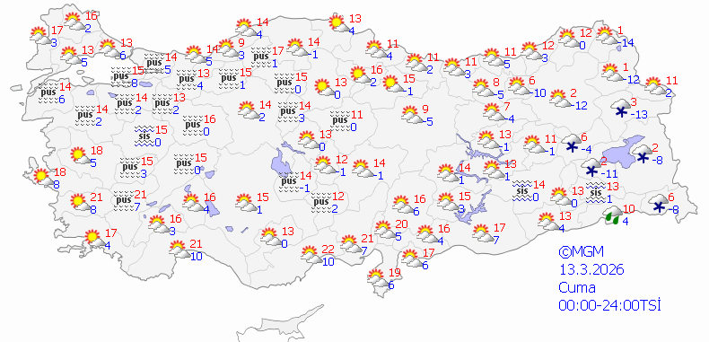 İç ve doğu kesimlerin parçalı ve az bulutlu, diğer yerlerin az bulutlu ve açık geçeceği tahmin ediliyor.