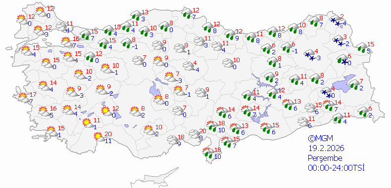Yağışların, Marmara'nın batısı, Kıyı Ege ve Akdeniz bölgeleri ile İstanbul, Bursa, Çanakkale, Balıkesir'in batı kesimleri, Van'ın güney çevreleri ve Hakkari'de kuvvetli,