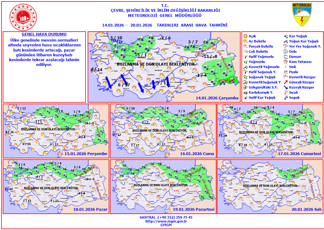 AKOM'un ve MGM'nin haftalık raporuna göre, sıcaklıkların hafta sonunda yeniden 3-5 derece birden düşmesi bekleniyor.