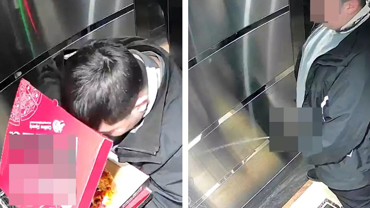 Vatandaş kamera görüntülerinde pizzayı getiren kuryenin üzerindeki malzemeleri yediğini ve asansöre tuvaletini yaptığını gördü.
