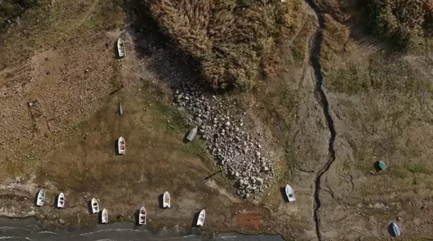 Sapanca Gölü'nün en düşük seviyesine gerilemesi ile birlikte kıyı kesimleri yaklaşık 50 metreye kadar çekildi.