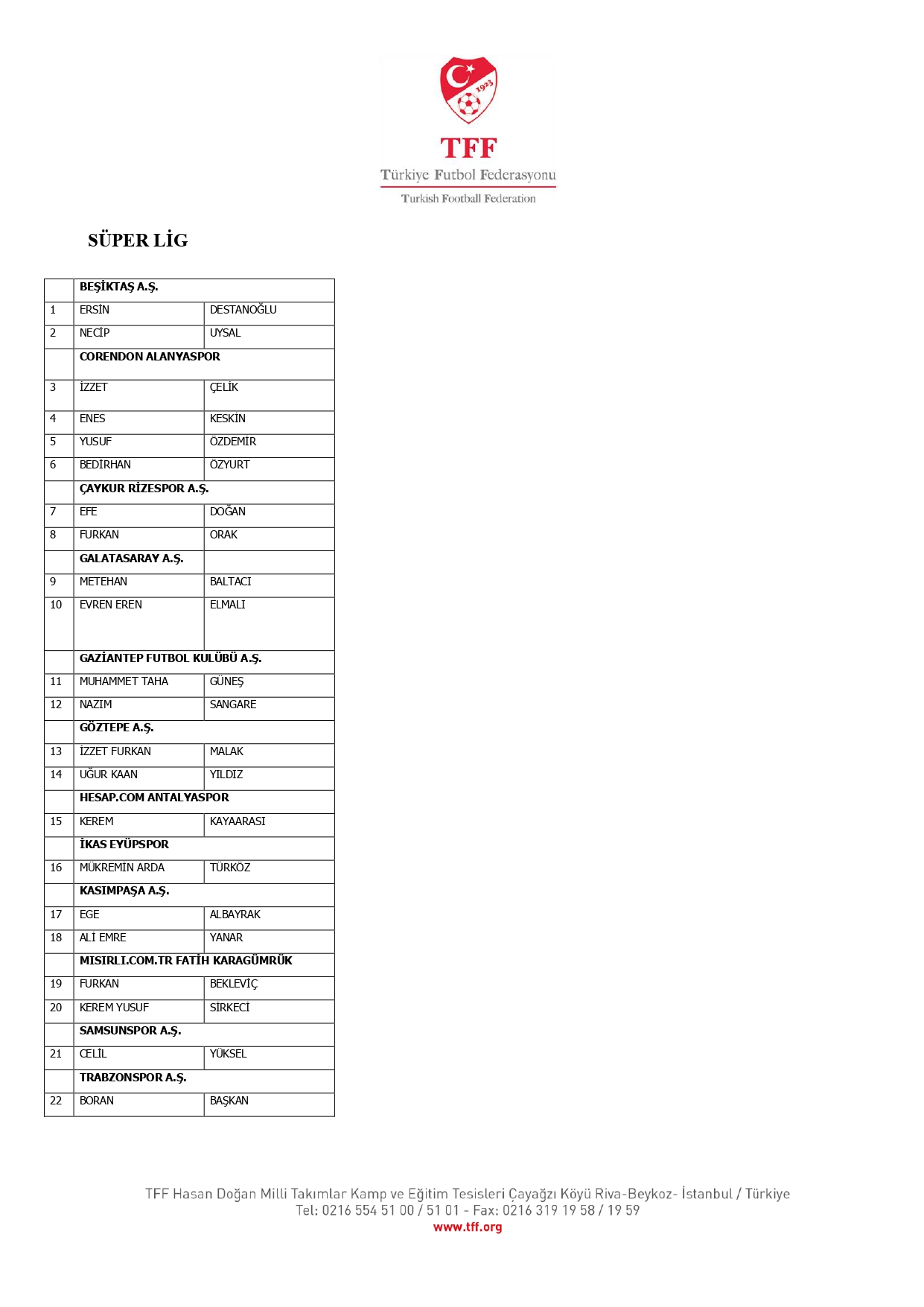 Türkiye Futbol Federasyonu'nca profesyonel liglere yönelik olarak yürütülen bahis soruşturması kapsamında bahis oynadığı tespit edilen 1024 futbolcunun Futbol Disiplin Talimatı'nın 57. maddesi uyarınca 10.11.2025 tarihinden itibaren tedbirli olarak PFDK'ya sevk edilmesine karar verilmiştir.
