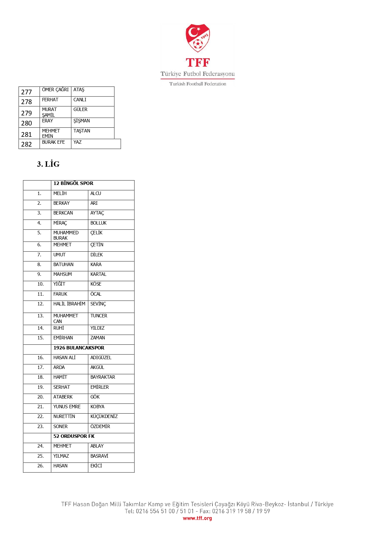 TFF Yönetim Kurulu'nun 10.11.2025 tarihli kararı ile TFF 2. Lig ve TFF 3. Lig müsabaka fikstürlerinin 2 hafta kaydırılmasına karar verilmiştir. TFF Süper Lig ve TFF 1. Lig müsabakaları daha önce ilan edildiği şekilde oynanmaya devam edecektir.