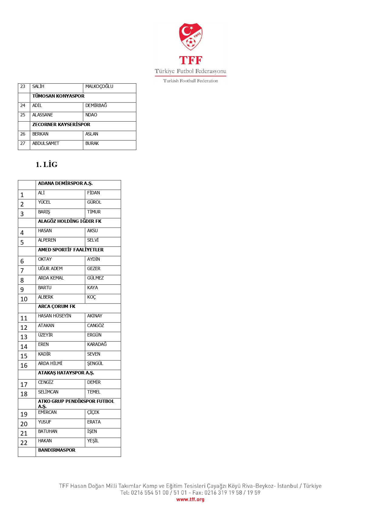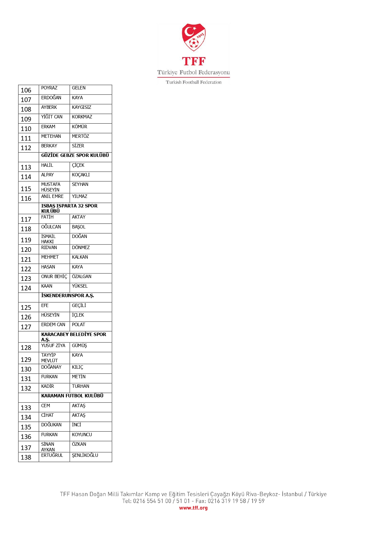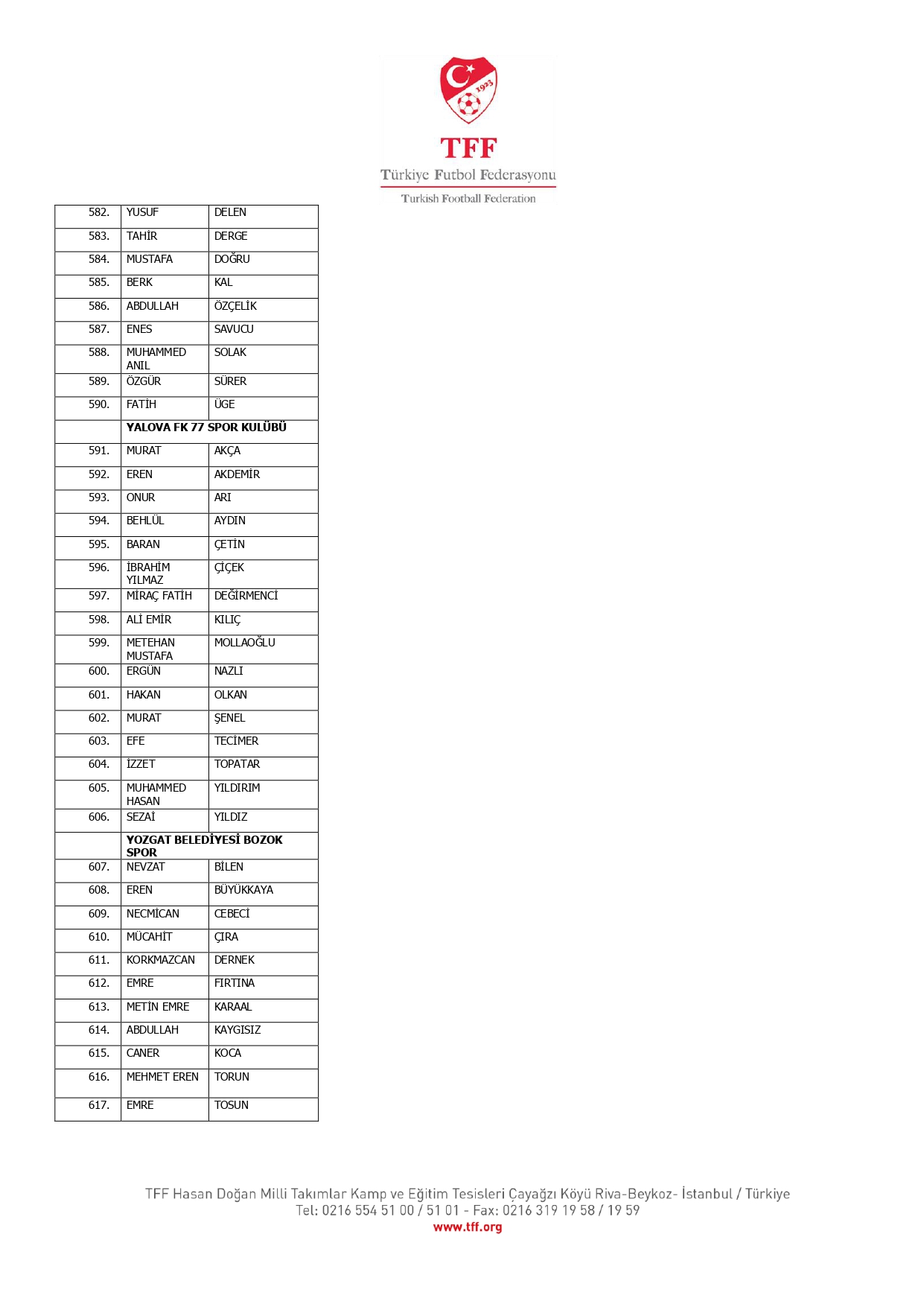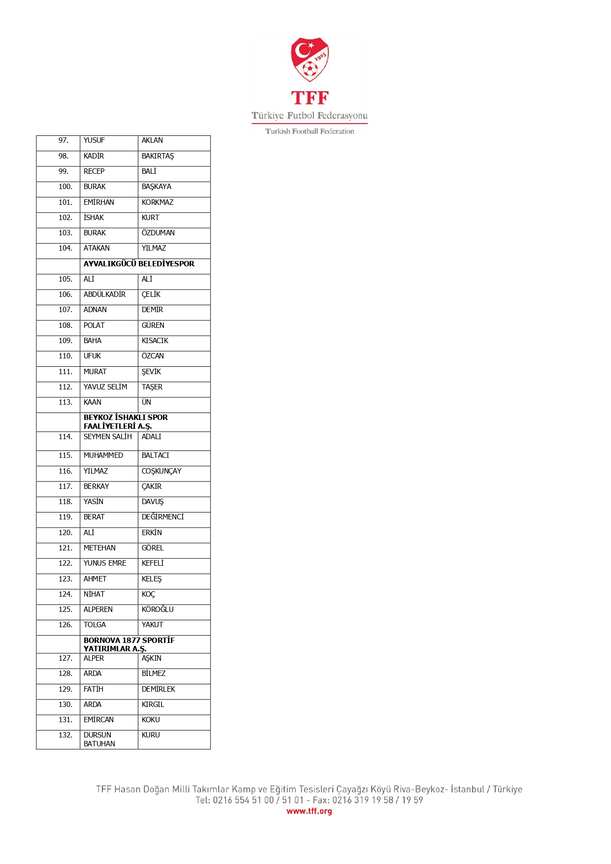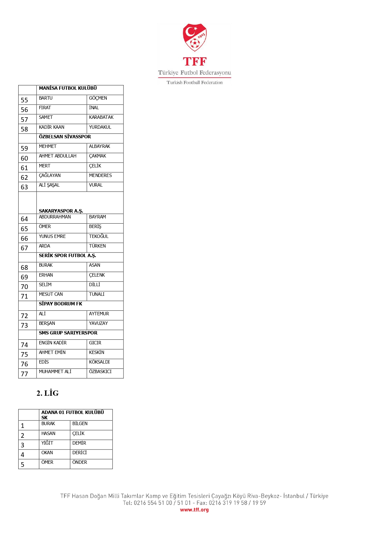 Futbol Disiplin Talimatı'nın 57. maddesi uyarınca PFDK'ya sevk edilen 1024 futbolcu aşağıda yer almaktadır.