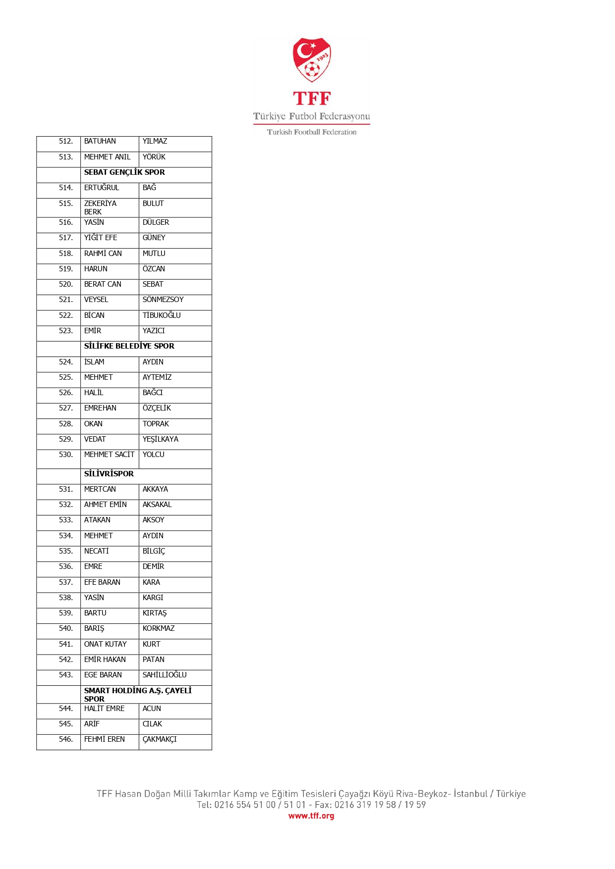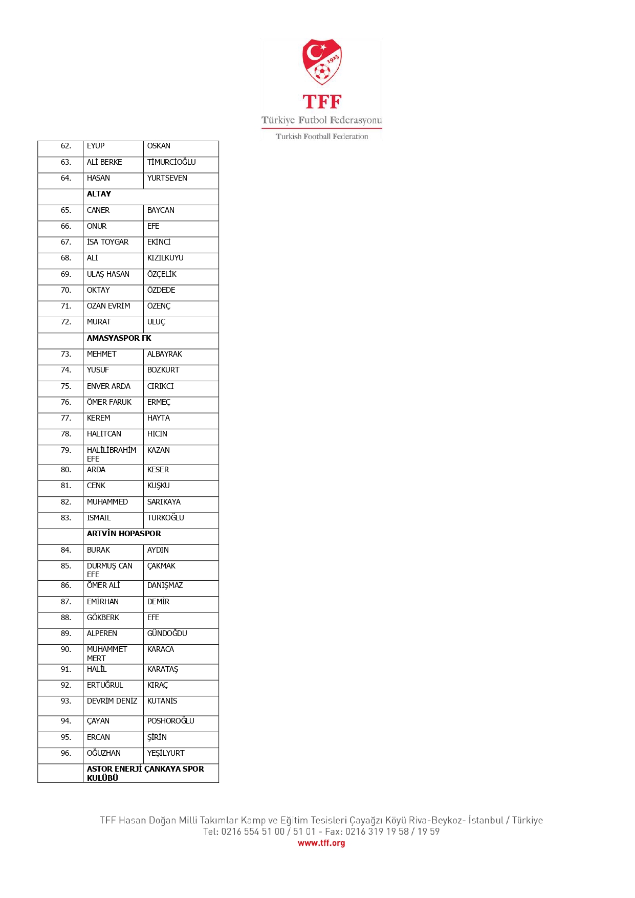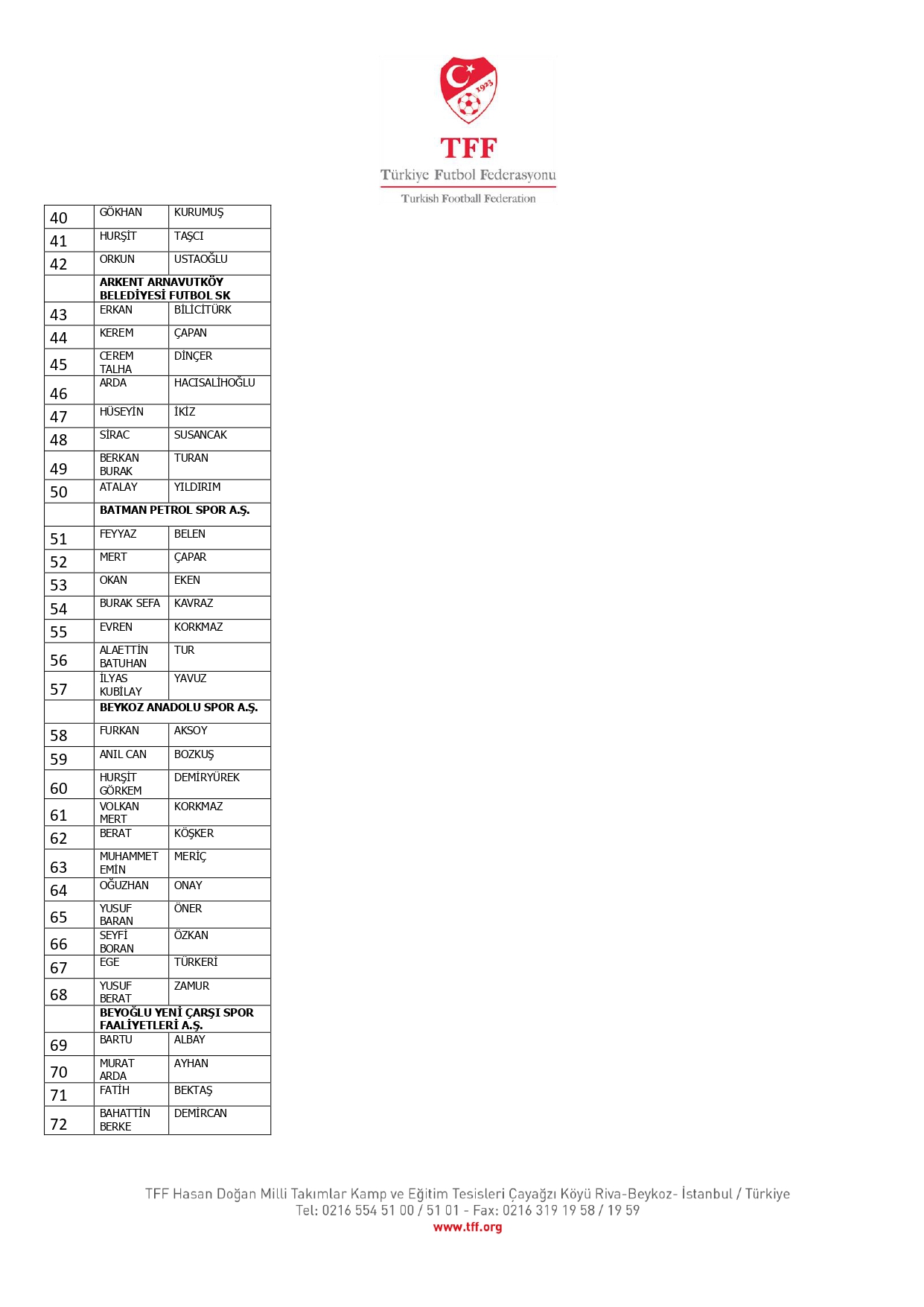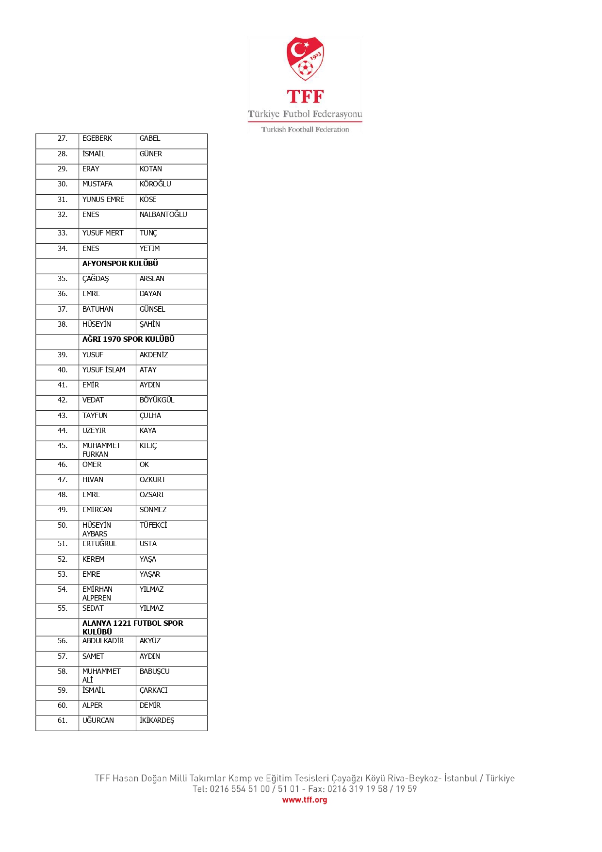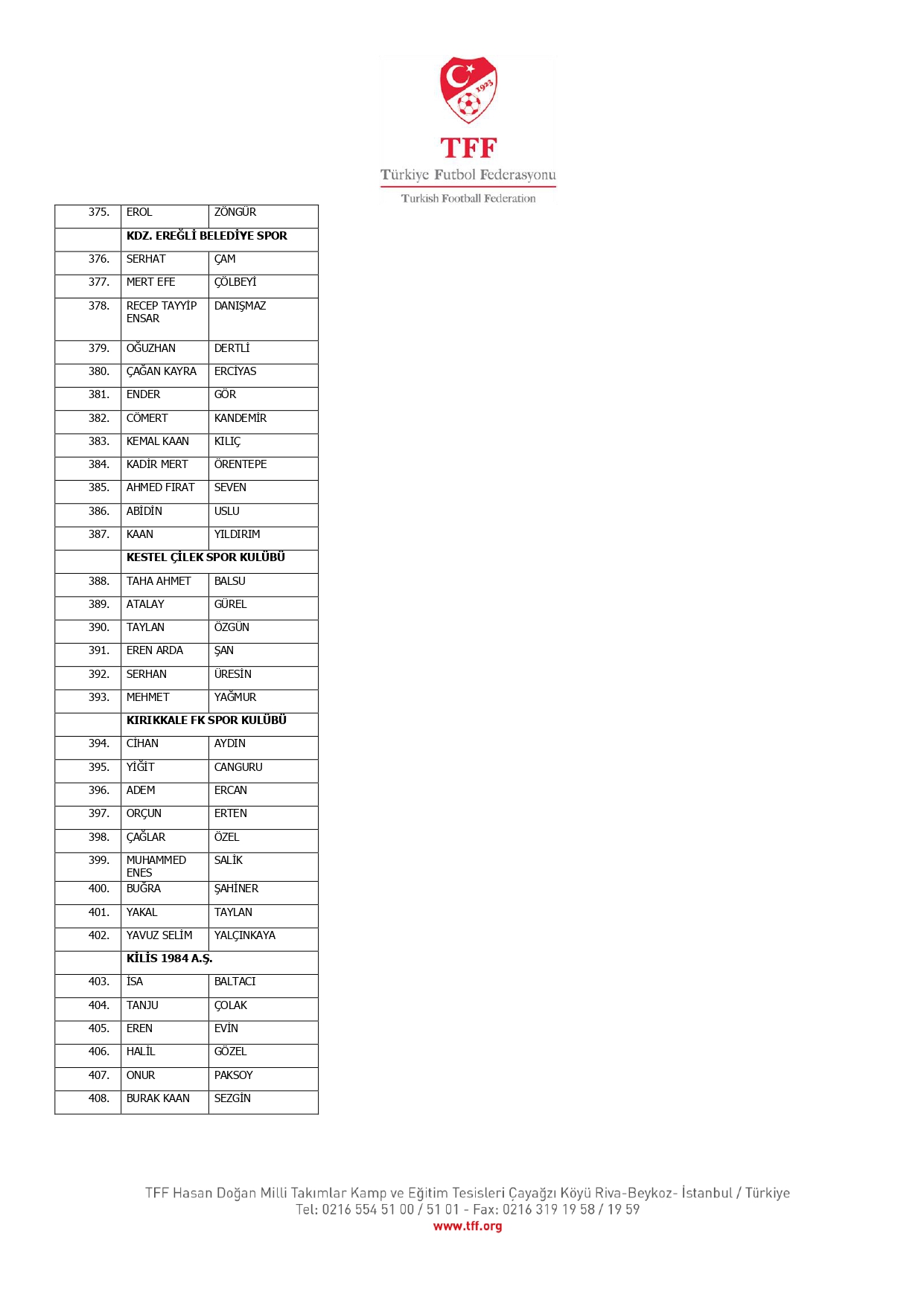 Futbol Disiplin Talimatı'nın 57. maddesi uyarınca PFDK'ya sevk edilen 1024 futbolcu aşağıda yer almaktadır.