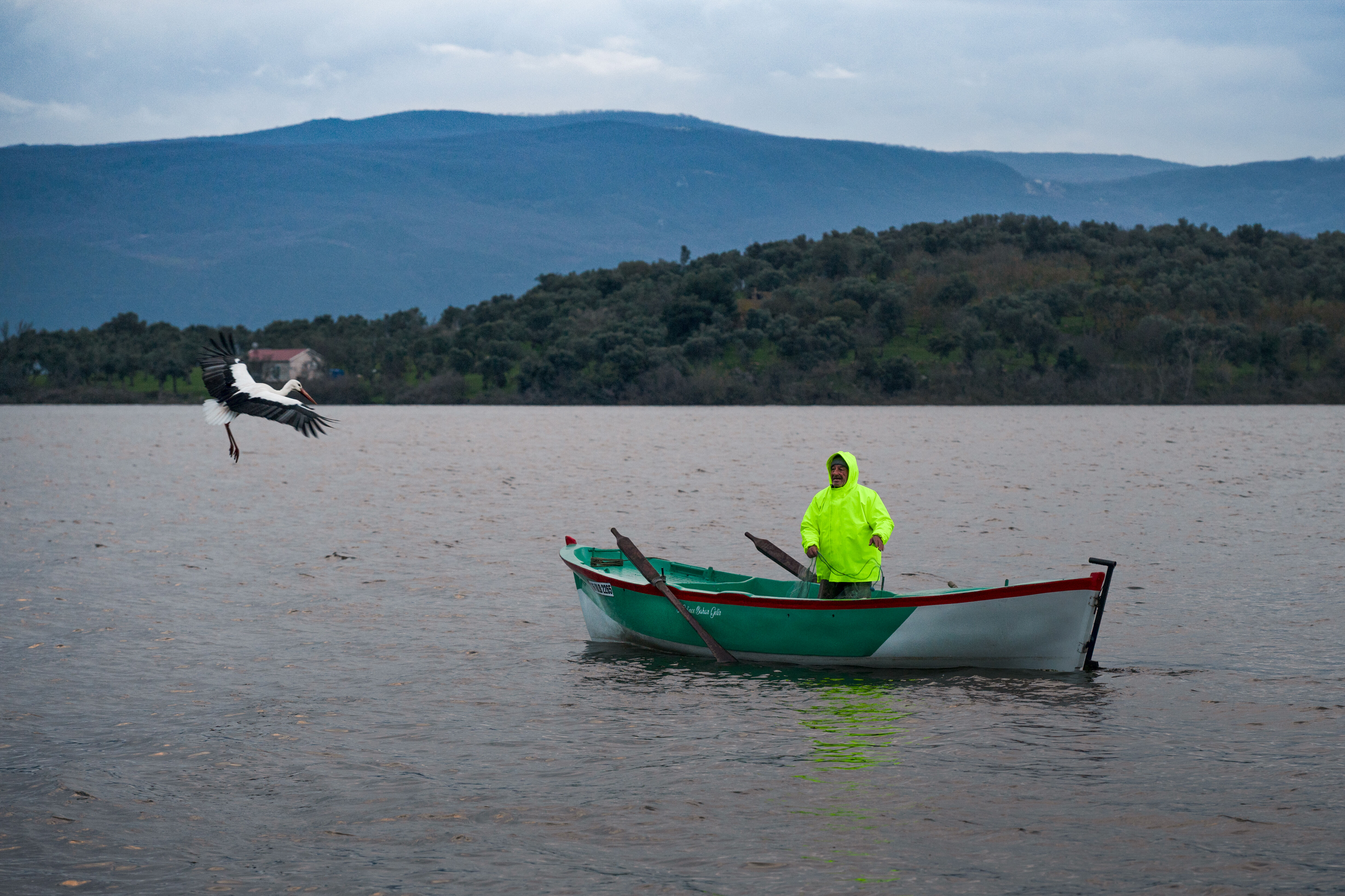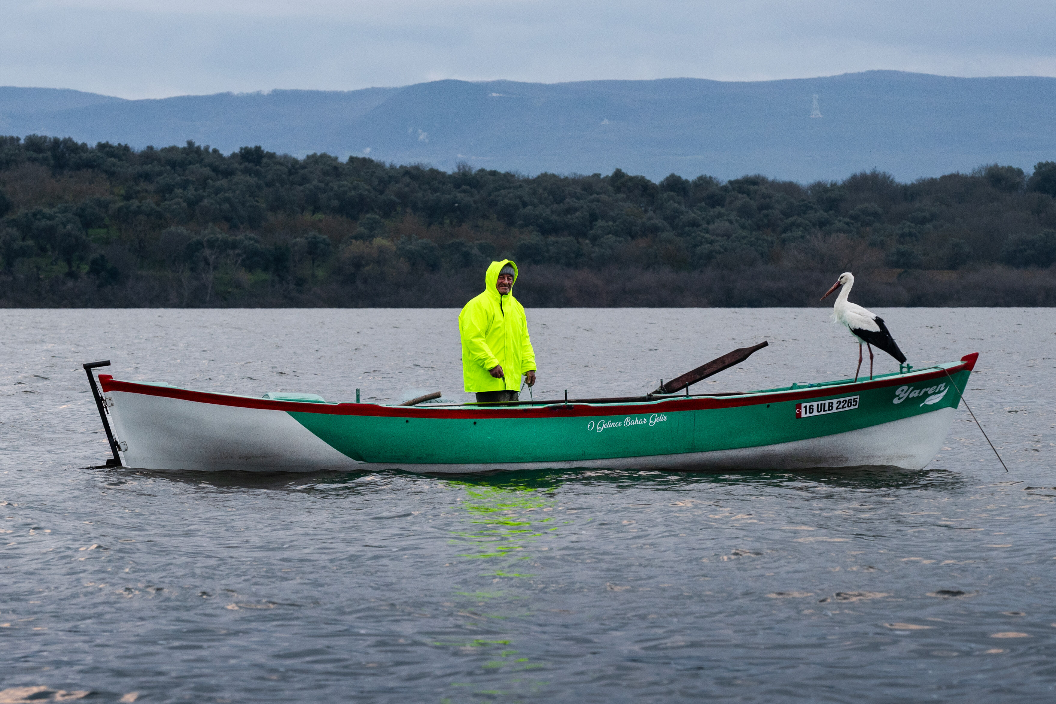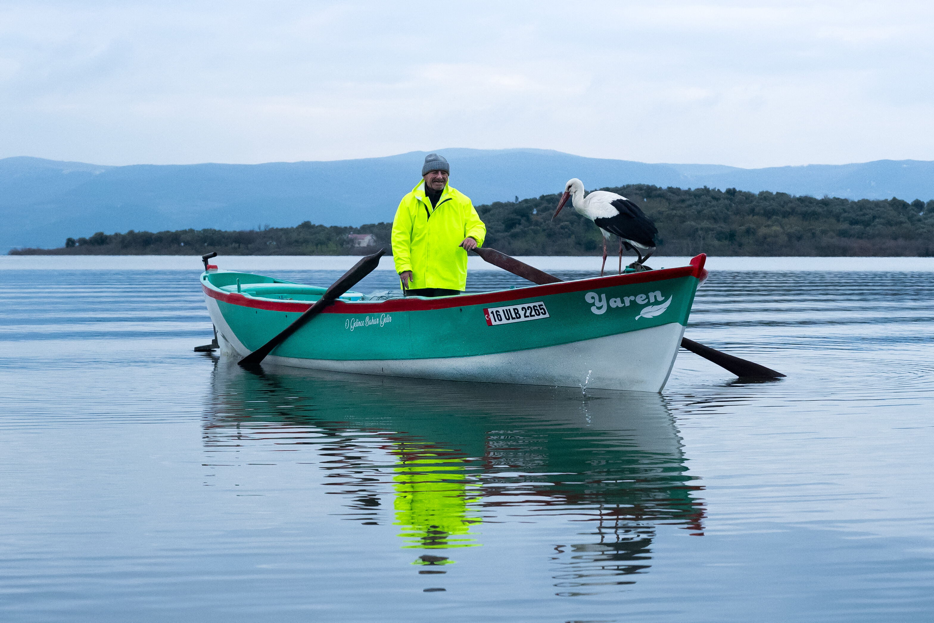 Nazlı zannedilen leylek, bu sabah göle açılan Yılmaz'ın kayığına konunca Yaren olduğu ortaya çıktı. O anlar, yaban hayatı fotoğrafçısı Alper Tüydeş tarafından görüntülendi.