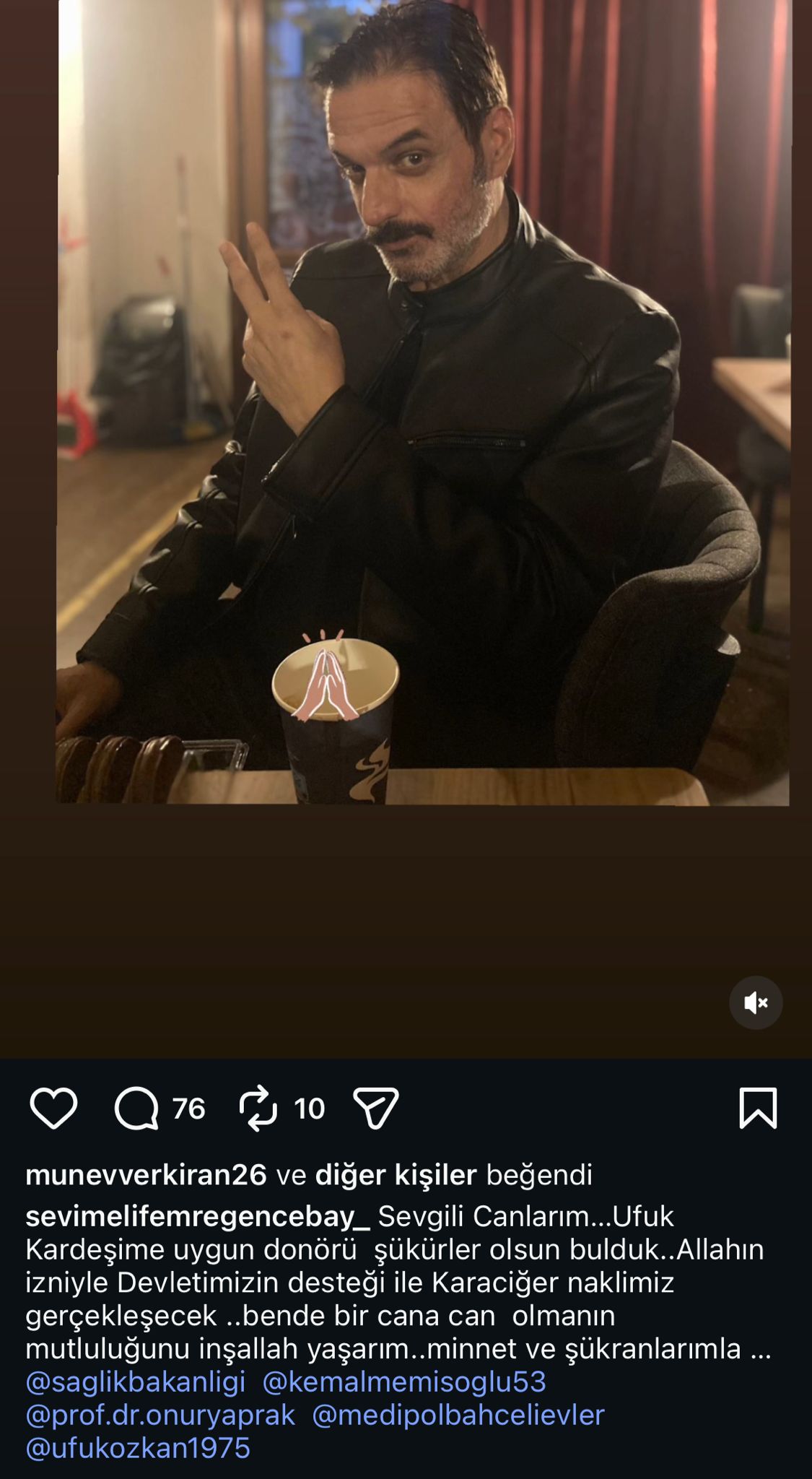 Sanatçı Sevim Emre, yaptığı paylaşımında Ufuk Özkan'a uygun donör bulunduğunu mutlulukla ifade etti.