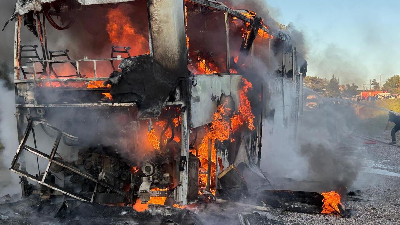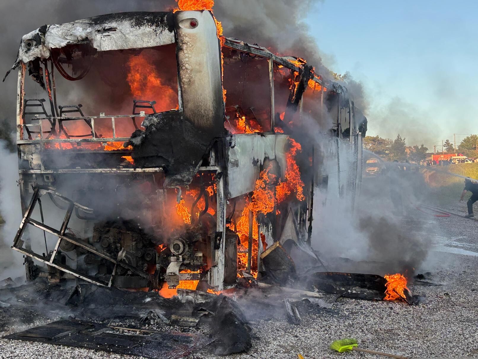 Dumanları fark eden şoför aracı durdururken, yolcular ve sürücü hızla otobüsten indi. Kısa sürede alev topuna dönen otobüs çevrede kısa süreli paniğe neden oldu.
