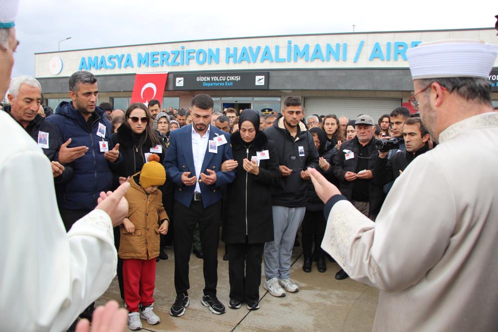 Şehit askerlerin Türk bayrağına sarılı naaşlarını taşıyan askeri uçak Amasya Merzifon Havalimanı'na indi.