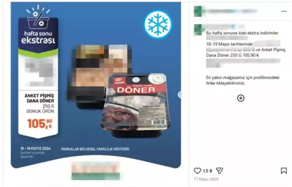 Söz konusu ürünün satıldığı zincir marketin, sosyal medya hesabında 1,1 milyon takipçiye sahip olduğu ve kampanyayı "Bu hafta sonuna özel ekstra indirimler! 18-19 Mayıs tarihlerinde Anket Pişmiş Dana Döner 250 G 105,90 ₺." İfadeleri ile duyurduğu ortaya çıktı.