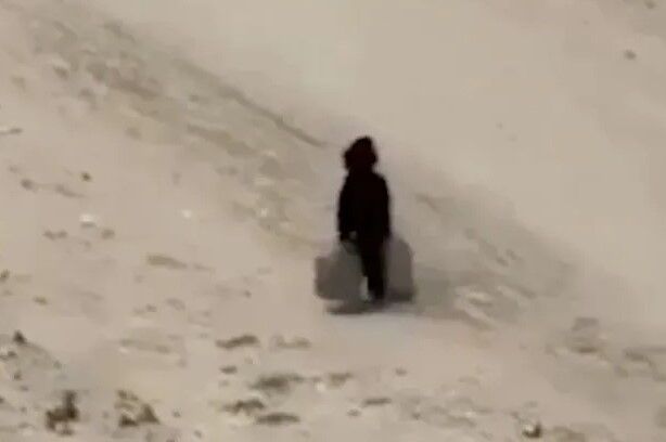 Kendinden ağır yükleri taşıyan, nefes nefese yürüyen Gazzeli bir çocuk.