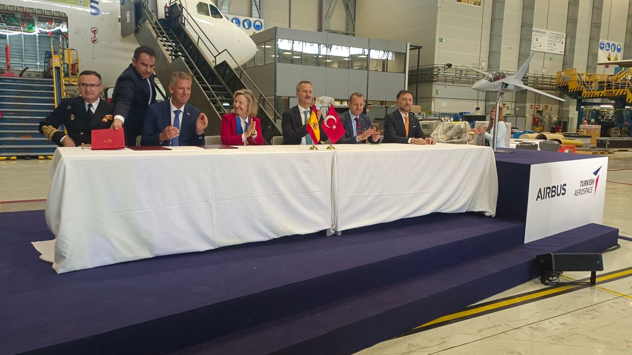 Törene TUSAŞ yetkilileri, İspanya savunma tedarik makamları ve Airbus temsilcileri katıldı. İmzalanan sözleşme kapsamında HÜRJET, İspanya Hava Kuvvetleri'nin eğitim uçağı ihtiyacını karşılamak üzere Avrupa semalarındaki yerini alacak.