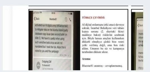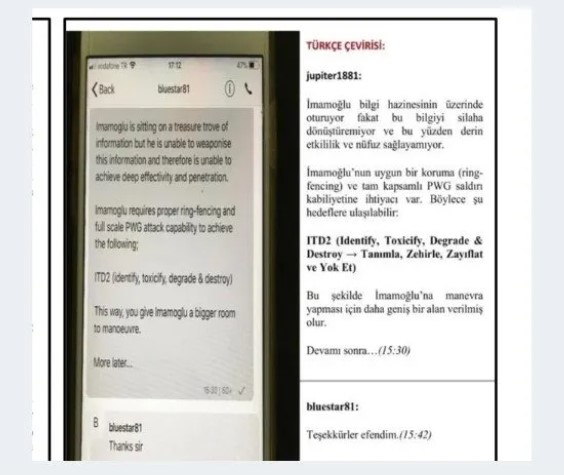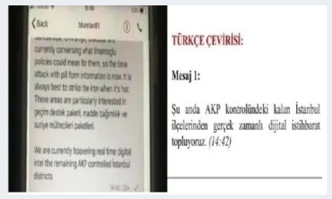Soruşturma dosyasına giren "Wickr" yazışmalarında çarpıcı detaylar ortaya çıktı. Öyle ki "Bluestar81" rumuzlu kullanıcıyla yapılan konuşmada, "Şu anda AKP kontrolündeki kalan İstanbul ilçelerinden gerçek zamanlı dijital istihbarat topluyoruz" ifadeleri yer aldı.