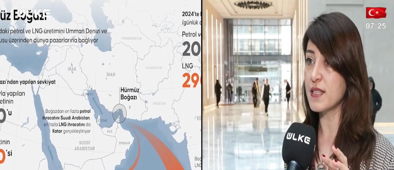 Hürmüz Boğazı’nın kapanması durumunda 5’te 1 oranında petrolde arz sıkışmasının yaşanacağına işaret eden Dr. Elif Kaya, “Bu da dünyada petrol arzının daralması ve de fiyatların yukarı yönlü hareket etmesi demektir. Enerjiye bu kadar bağımlı olunan dönemde enerji arzının düşmesi aslında dünya çapında bir krize sebep olmak demektir. Hürmüz Boğazı’nın en dar kısmında 3 tane adanın olduğu yer! Hepsinin kontrolü de İran’da. İran’a da bu gücü, kozu veren şey de o. Orası İran’ın suları ve isterse kapatabiliyor. Ancak tam kapatmak demek enerji arzının sıkıntıya gitmesi demek yukarıya gitmesi anlamına gelir. Tam kapatma durumu olursa ve özellikle de uzun süreli gerçekleşirse petrolün varil fiyatının 100 doları aşması uluslararası raporlarda bekleniyor.” sözleri yer verdi.