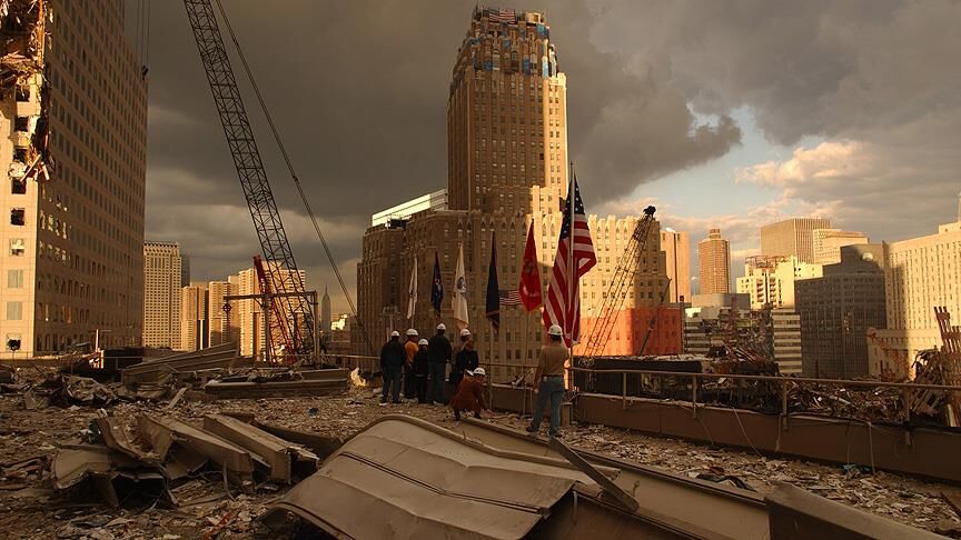 İkiz kuleler hem ABD hem de tüm dünyanın canlı yayında izlediği saldırıların ardından milyonların gözü önünde dakikalar içinde yerle bir oldu ve Manhattan Adası toz bulutlarına büründü.
