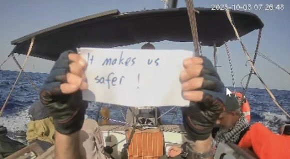 Uluslararası Gazze Ablukasını Kırma Komitesi'nin sosyal medya hesabından yaptığı açıklamada, alıkonulan Küresel Sumud Filosu mürettebatına dair bilgi paylaşıldı.