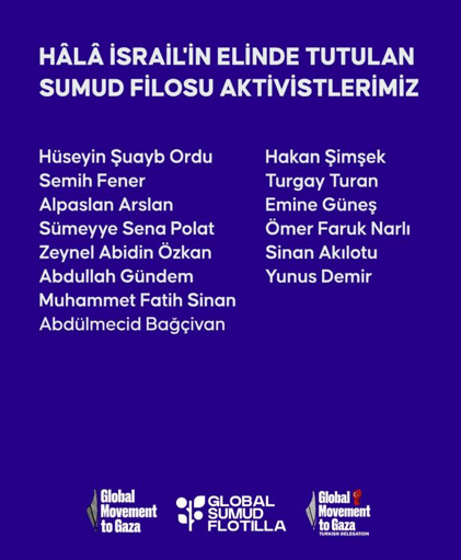 Ancak, aktivistler, 40'tan fazla tekneyle Gazze'ye seyir halindeyken İsrail ordusu tarafından 1 Ekim’de yasa dışı şekilde alıkonuldu.