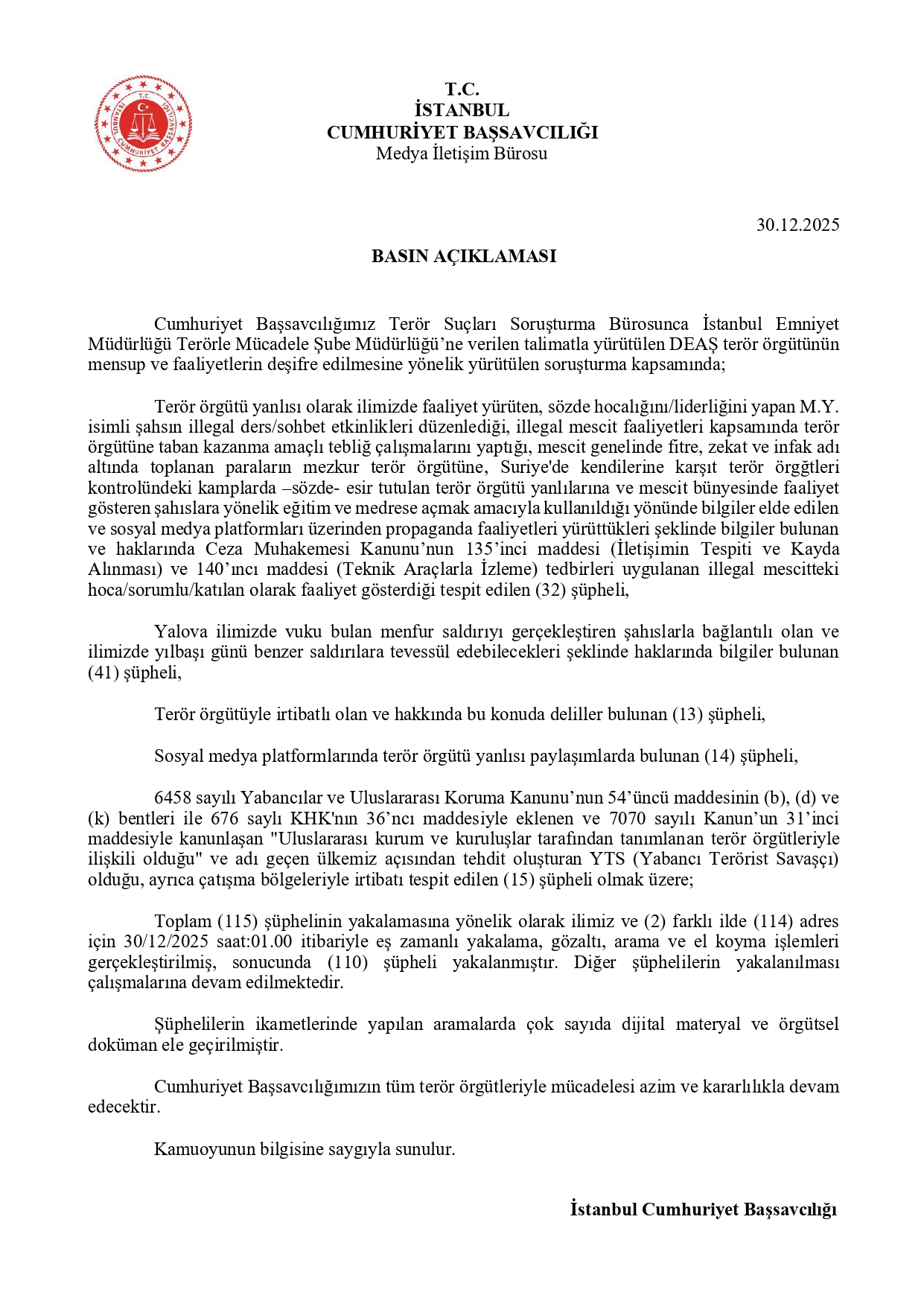 İstanbul Cumhuriyet Başsavcılığı operasyonla ilgili açıklamada bulundu.