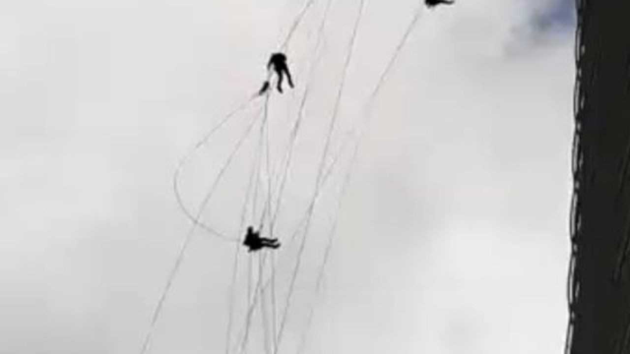 Metrelerce yüksekte savrulan işçiler, yaklaşık 2 buçuk saat boyunca binadan inmeye çalıştı.