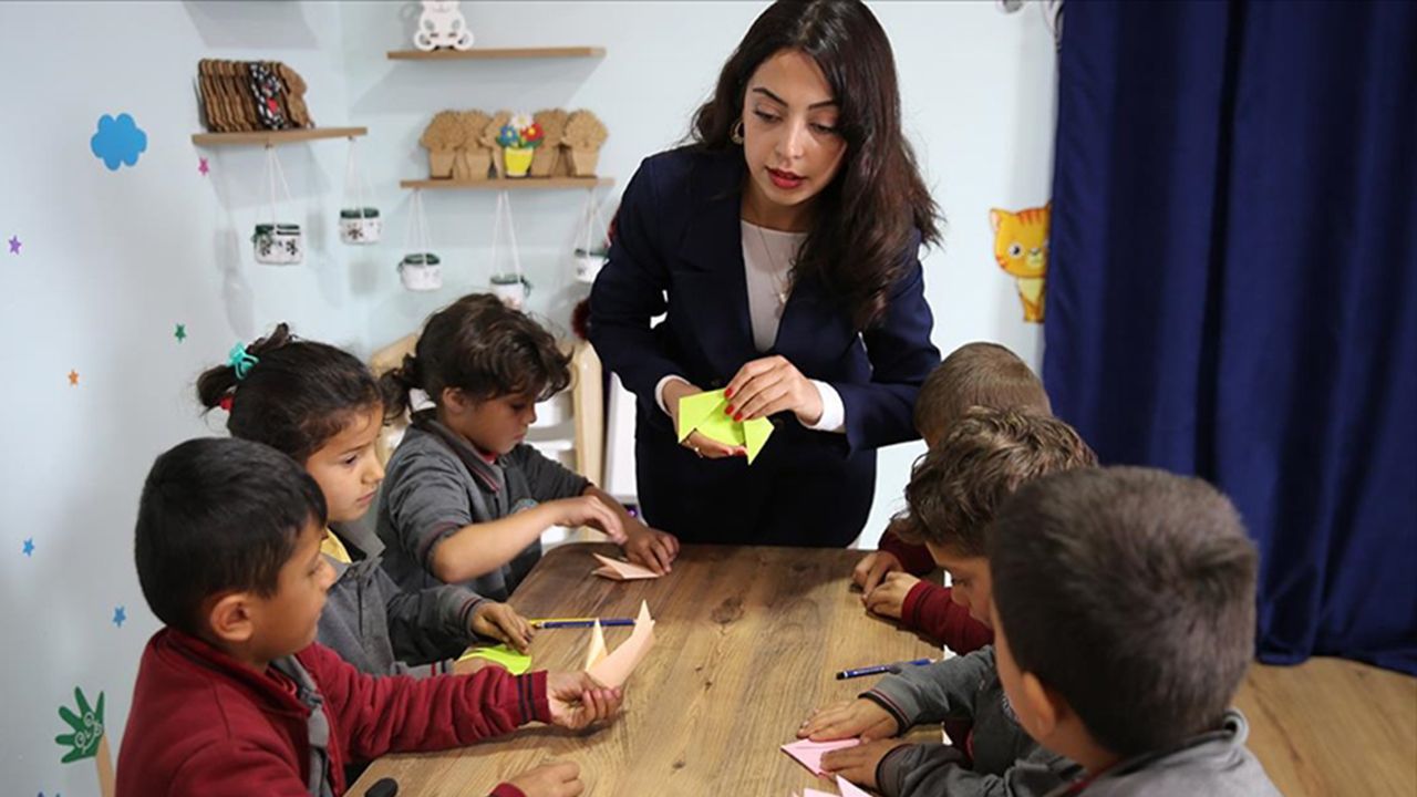 "Yumurta kolisi, eskimiş bir poşet ya da diğer malzemelerden ürünler ortaya çıkarıyoruz. Çoraplardan bebek, CD'lerden balıklar yapabiliyoruz. Yumurta kolisinden çiçekler oluşturuyoruz. Böylece hem çevre bilinci oluşturuyoruz hem de geri dönüşüme katkı sağlıyoruz. Etkinlikleri yaparken çocukların yaratıcı düşünmelerini, özgür bir ortamda ürün ortaya çıkarmalarını sağlıyoruz. Burada yaptığımız ürünlerle okulumuzu süsledik. Etkinliklerin ve oyunların burada provasını yaptıktan sonra dışarıda oynuyoruz."