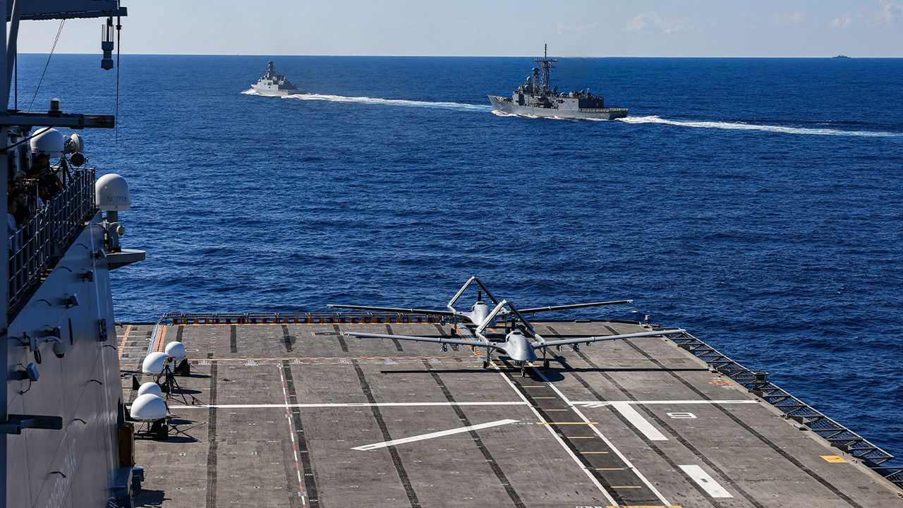 Tatbikat kapsamında Türkiye'nin mavi vatandaki gücünün simgesi haline gelen TCG Anadolu gemisinden art arda havalanan iki Bayraktar TB3 SİHA tarihi göreve imza attı.