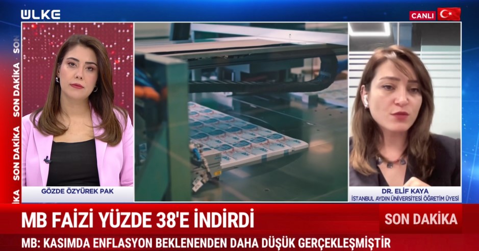 İstanbul Aydın Üniversitesi Öğretim Üyesi Doktor Elif Kaya, Ülke TV canlı yayınında Merkez Bankası’nın faiz indirim kararını değerlendirdi.