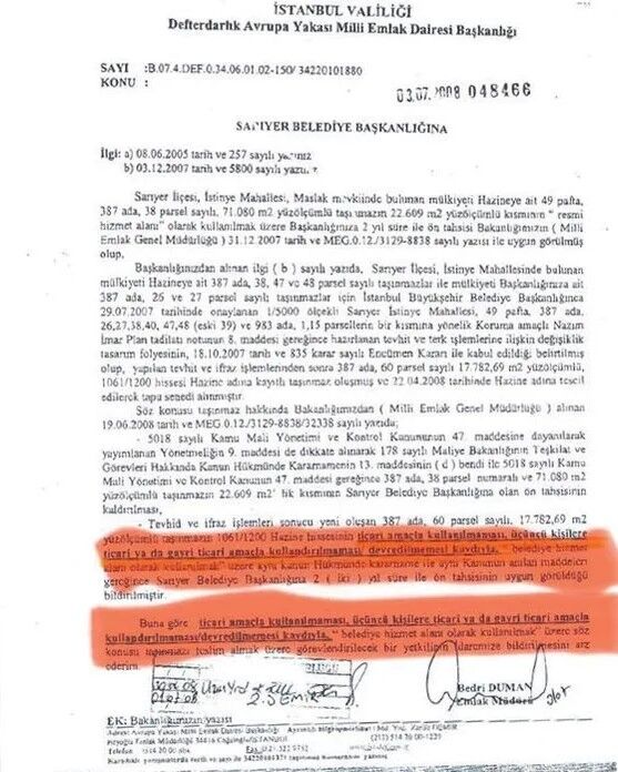 CHP'li Sarıyer Belediyesi'ne İstanbul Valiliği Milli Emlak Dairesi Başkanlığı'nca ticari amaçla kullanılmaması ve üçüncü kişilere kullandırılmaması şartıyla "belediye hizmet alanı" olarak tahsis edilen Boğaziçi Kültür Sanat Merkezi (BKSM) ve Rauf Denktaş Kültür Merkezi'nin rant kapısı haline getirildiği belirlendi.