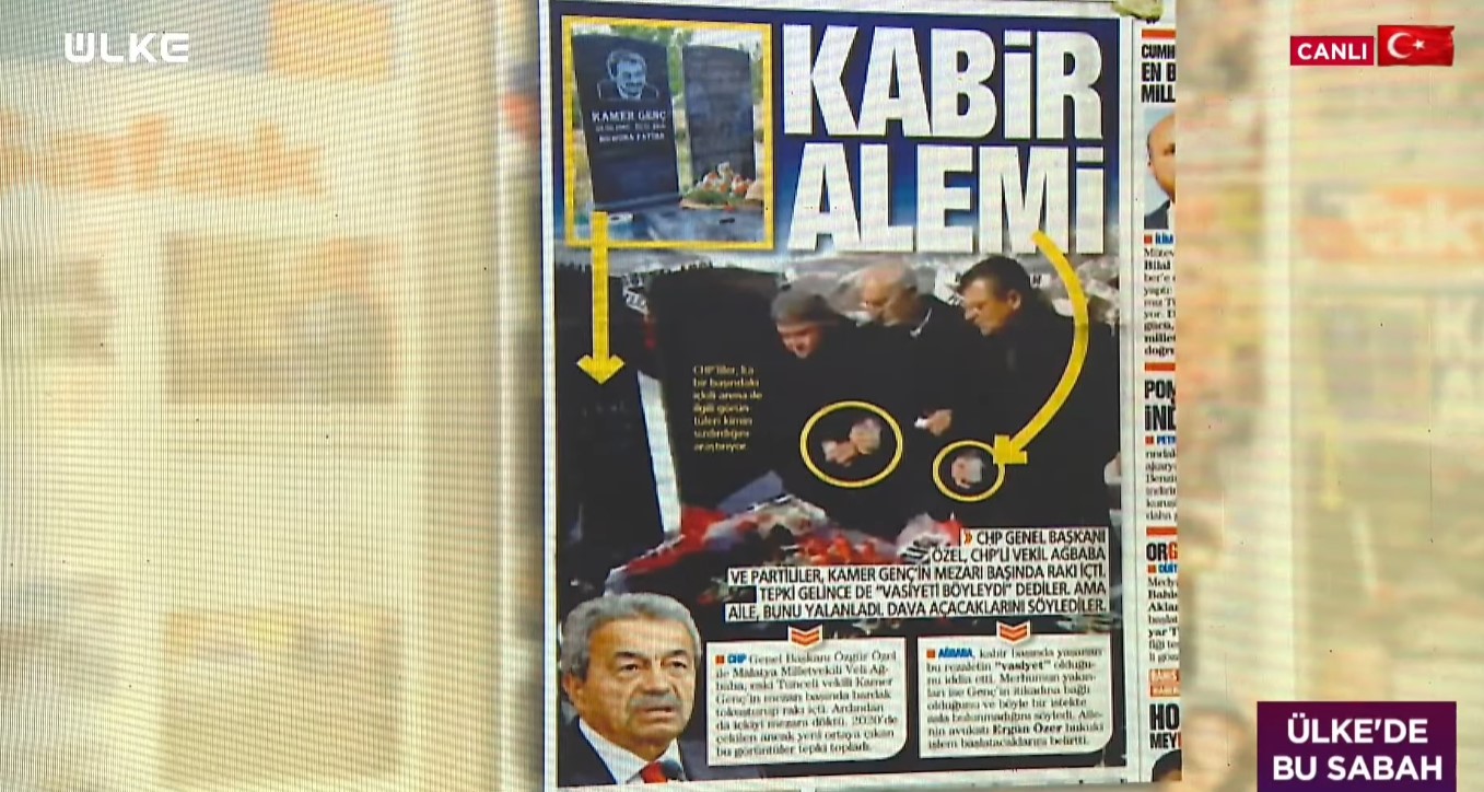 “Haberi utanarak veriyoruz” diyen Karakaya, “Ben görüntüyü ilk gördüğümde yapay zeka falan zannettim! Olur ya… İlk başta CHP’ye karşı olan, iktidara karşı olan troller var... Öyle bir şey mi? acaba falan dedim. Video devam ettikçe ben buna inanamadım. Özgür Bey, bu kadar olmaz Allah aşkına yapmayın! Dini olarak çok hassas olmayabilirsiniz. Bu sizin hayatınız. Ama mezar başında ölmüş kişiye olan saygınız bu olmamalı. CHP Genel Başkanı davalık oluyor mezar başında rakı içtiği için! Şuna bakar mısınız? Bir de mezara döküyor.” İfadelerini kullandı.
