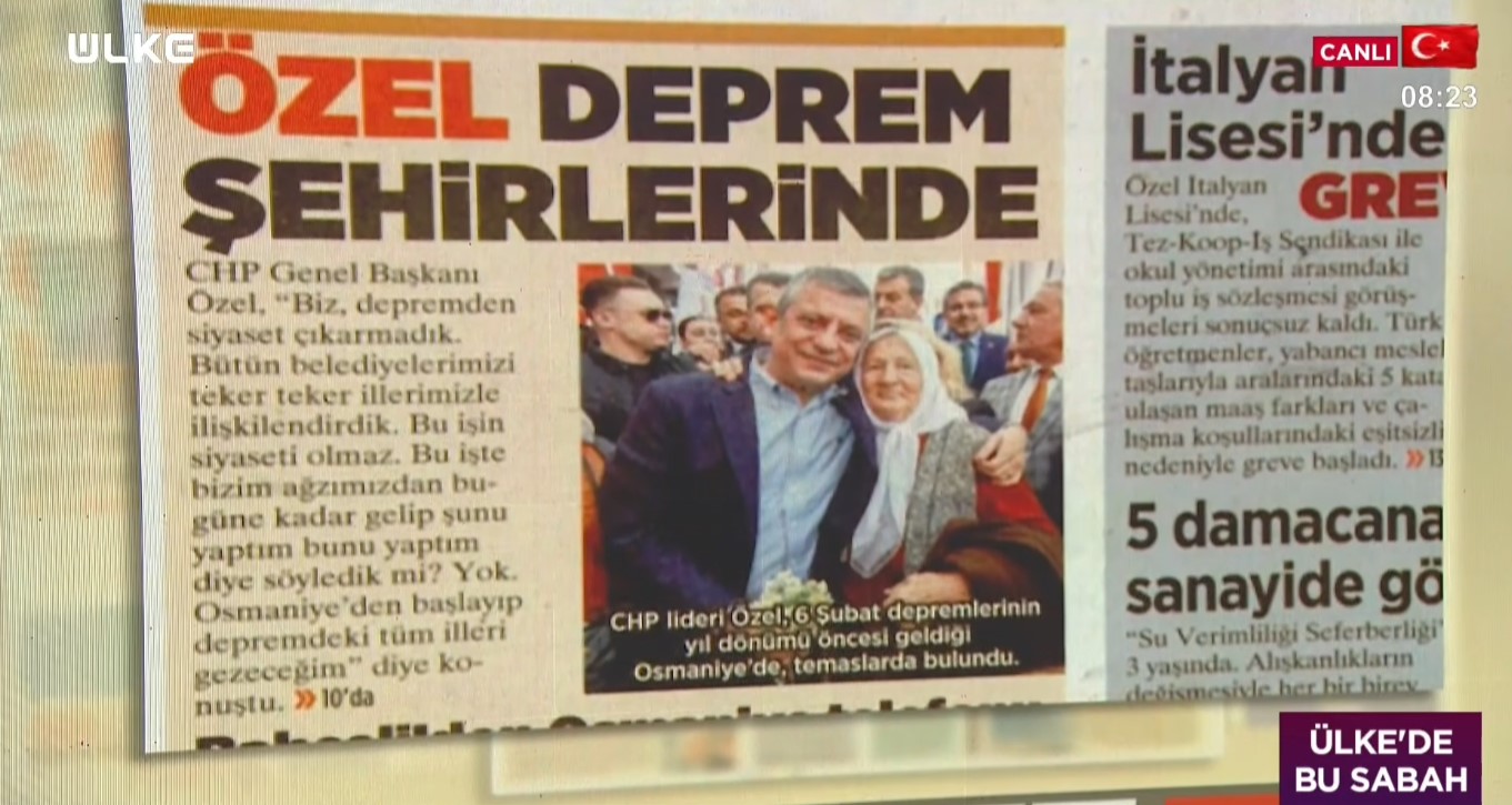 Ülke TV'de yayınlanan Ülke'de Bu Sabah programının sunucusu Şahin Karakaya, CHP Genel Başkanı Özgür Özel'in deprem bölgesindeki ziyaretini değerlendirdi.