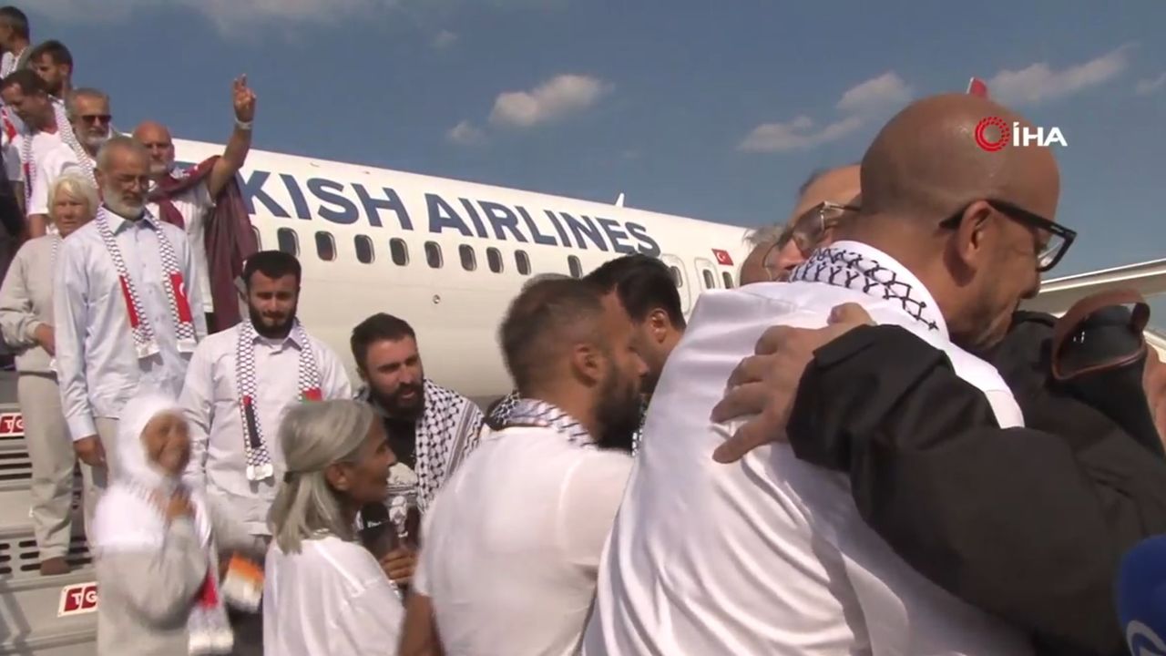 Apronda, TBMM Türkiye-Filistin Parlamentolar Arası Dostluk Grubu Başkanı ve AK Parti İstanbul Milletvekili Hasan Turan, AK Parti İstanbul İl Başkanı Abdullah Özdemir ve THY yetkilileri tarafından çiçeklerle karşılanan aktivistler, otobüsle havalimanı önüne götürüldü.