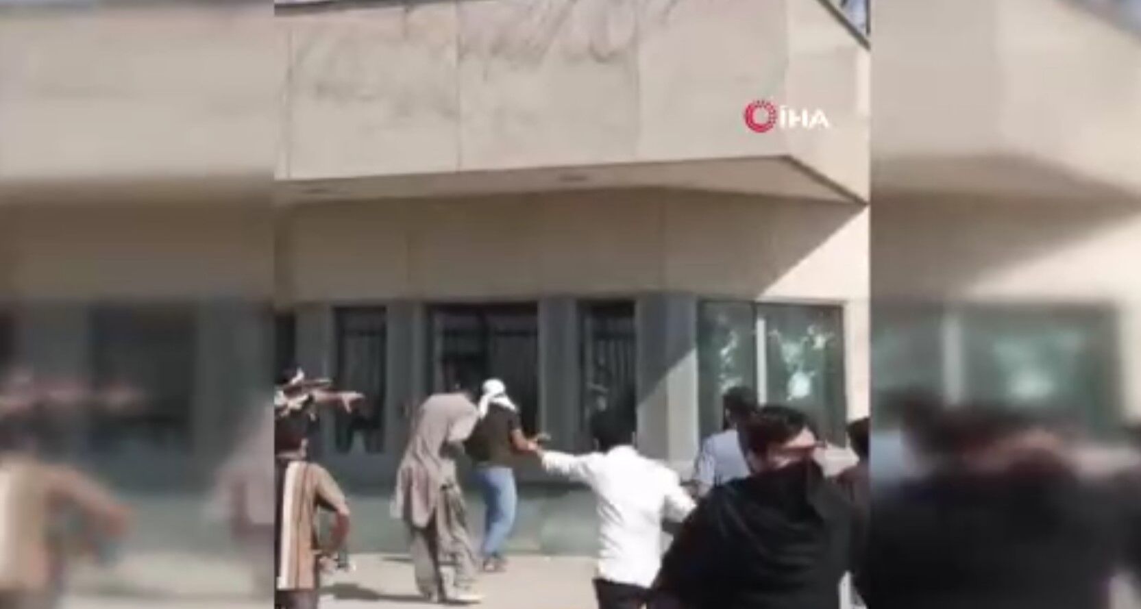 Göstericilerin tepkisinin ardından büyükelçiliği koruyan güvenlik güçleri, göz yaşartıcı gaz, cop ve tazyikli su kullandı.