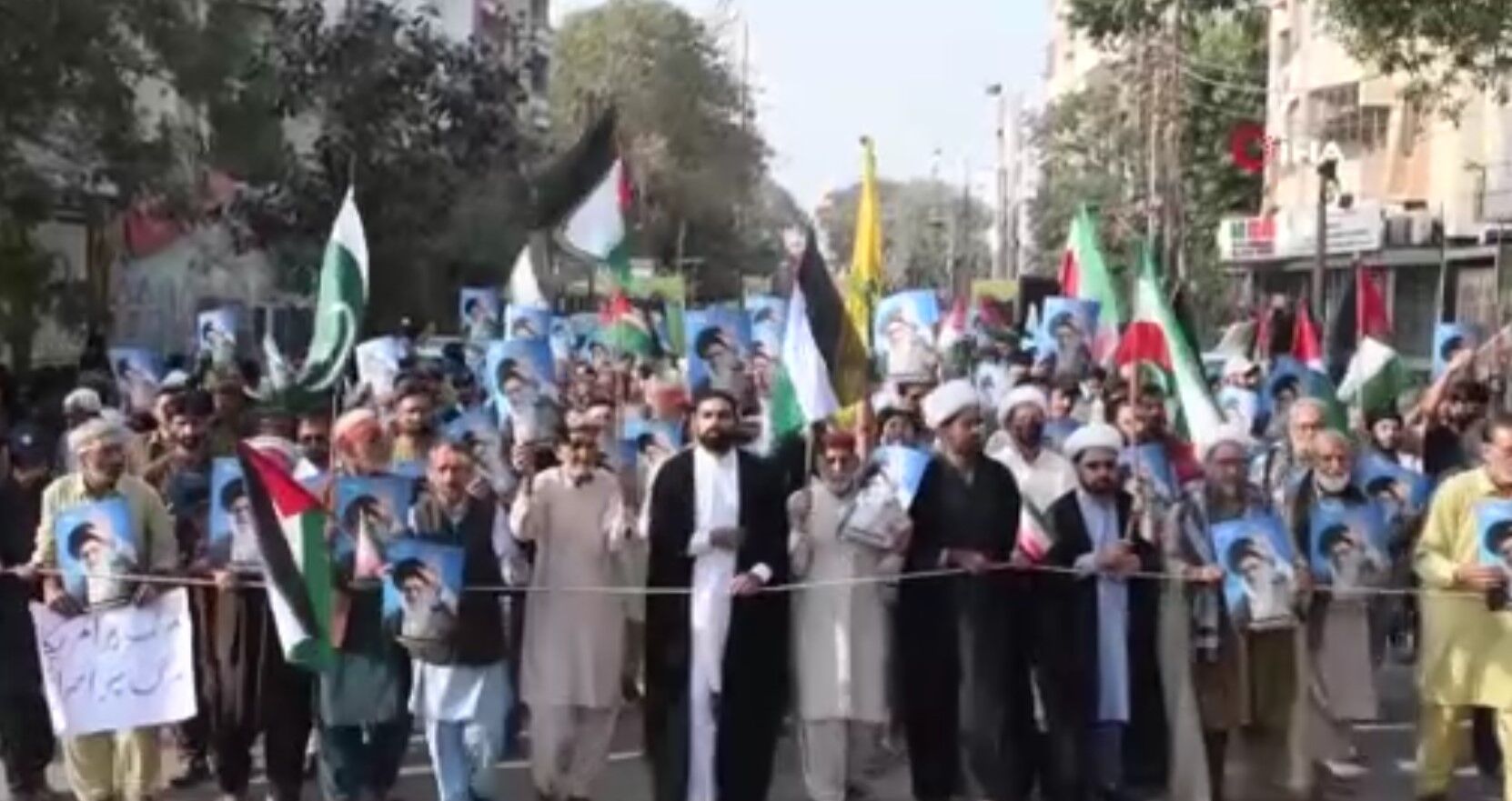 Pakistan'ın Lahor kentinde yaklaşık 5 bin kişi ABD-İsrail ortak saldırılarını protesto etti.