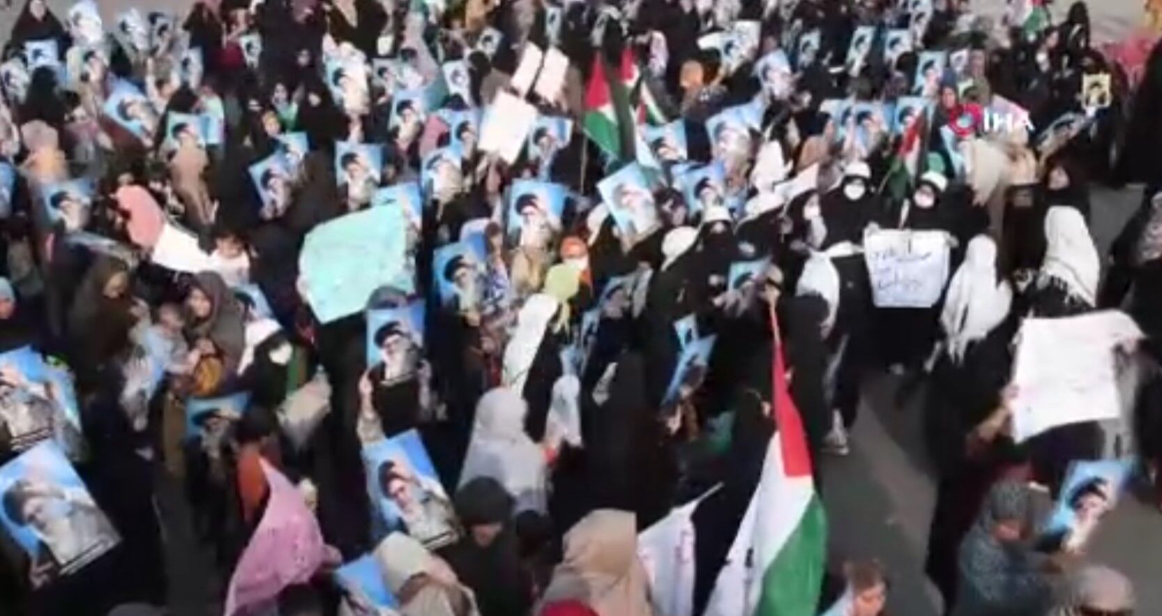 Protestocular "Kahrolsun ABD" ve "ABD teröristtir" sloganları attı. Protestocular, ABD-İsrail ortaklığında dün düzenlenen saldırıda hayatını kaybeden İran'ın dini lideri Ayetullah Ali Hamaney'in portrelerini taşıdı.