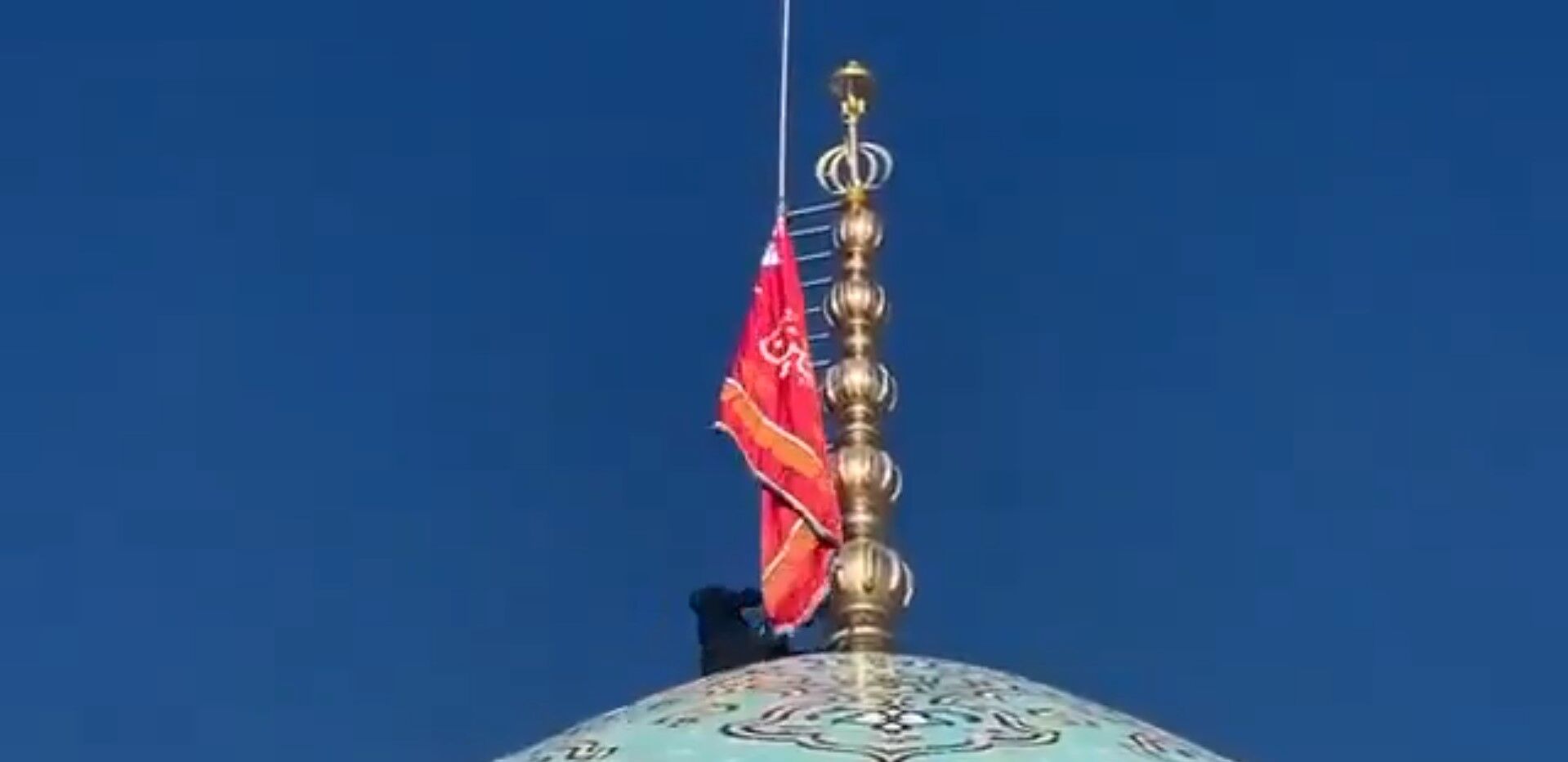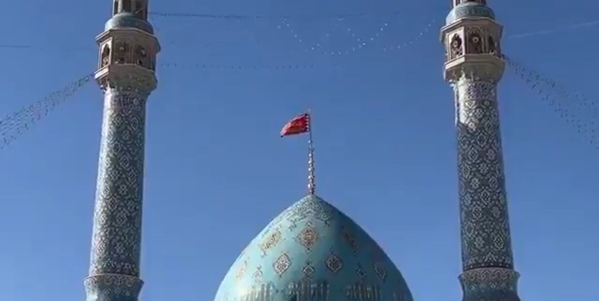 Diğer yandan İran'da 'intikam'' anlamına gelen kırmızı bayrak göndere çekildi.