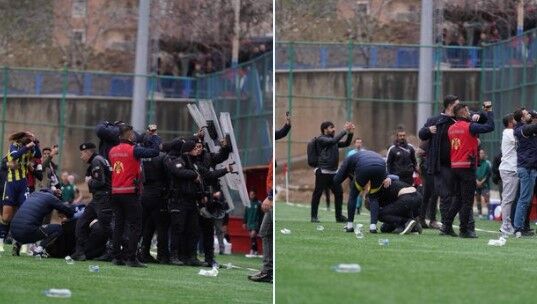 Ayrıca Fenerbahçe Kadın Futbol Takımı oyuncularına birçok yabancı madde atılırken, teknik direktör Gökhan Bozkaya da kendisine isabet eden cisimler nedeniyle yerde kaldı.