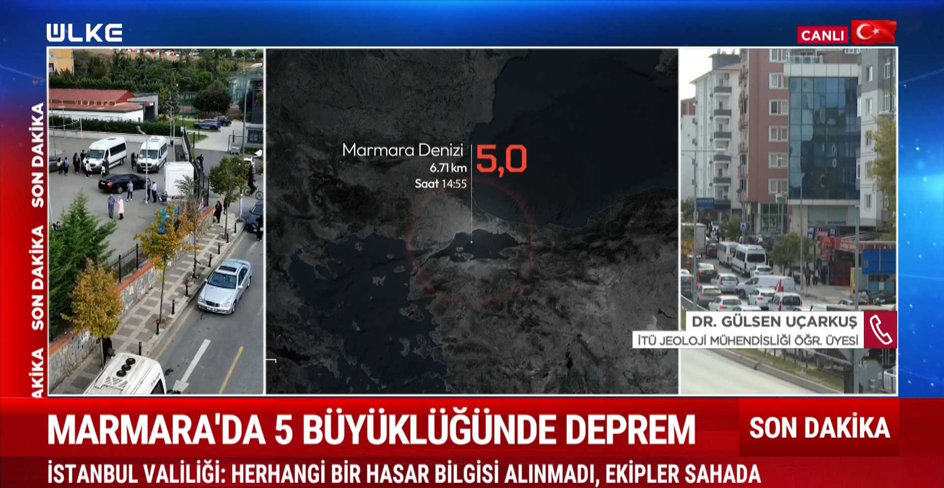İstanbul'da da hissedilen son deprem sonrası İstanbul Teknik Üniversitesi Jeoloji Mühendisliği Öğretim Üyesi Dr. Gülsen Uçarkuş, ÜLKE TV canlı yayınında değerlendirmelerde bulundu.